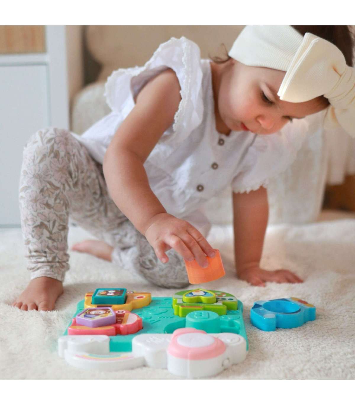 Интерактивная головоломка от бренда WOOPIE — это милая развивающая игрушка, разработанная с учетом самых маленьких детей. Игрушка сочетает в себе элементы когнитивного, сенсорного и моторного развития, поддерживая всестороннее развитие ребенка уже в первые месяцы жизни. Благодаря привлекательной цветовой гамме, звукам и интерактивным элементам игрушка побуждает малышей учиться через игру, одновременно развивая их мелкую моторику и способность распознавать формы и цвета.