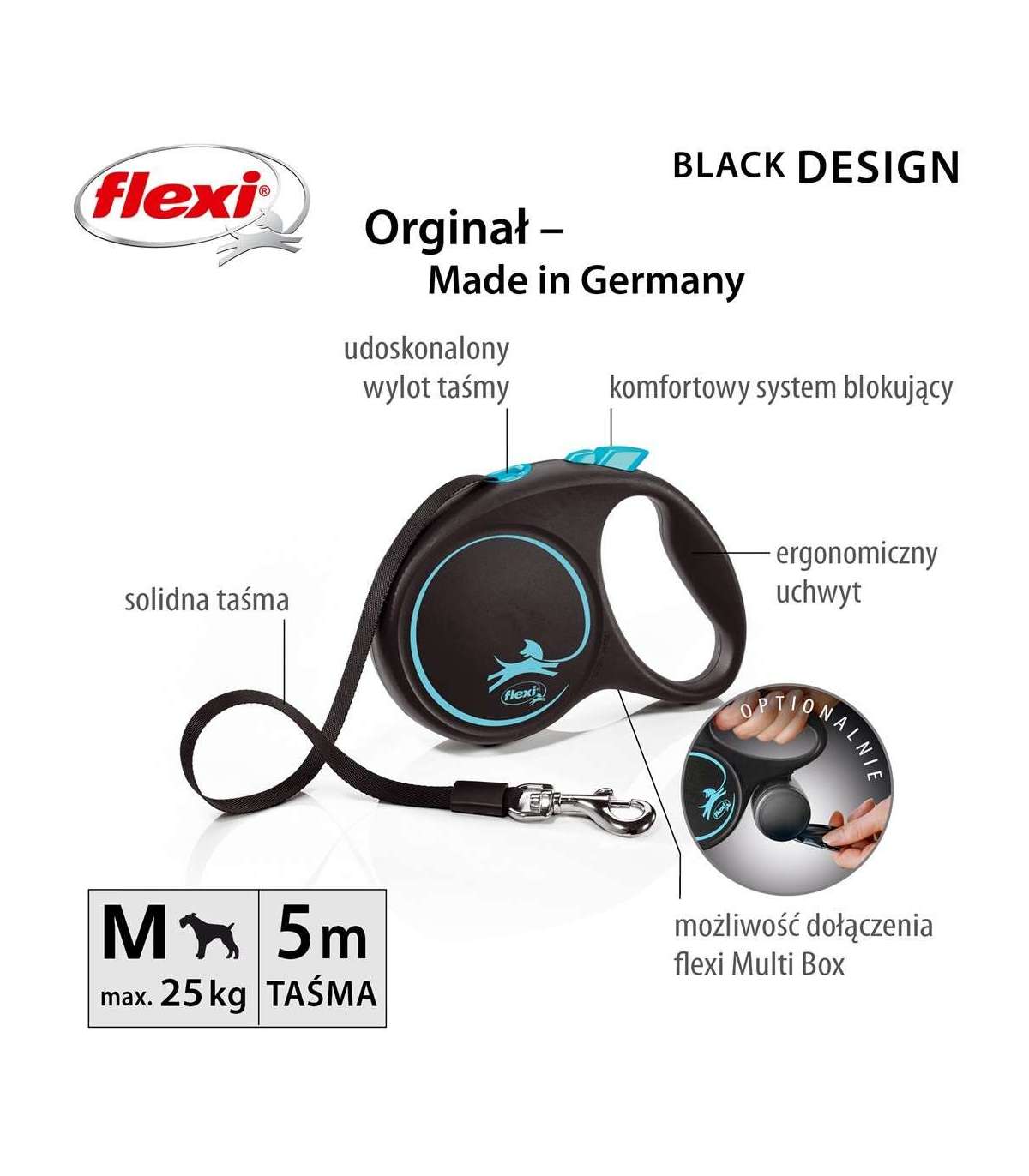 Flexi Automatic leash Black Design M 5 m, Blue