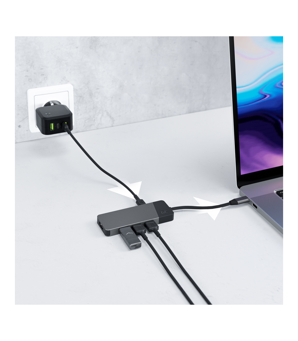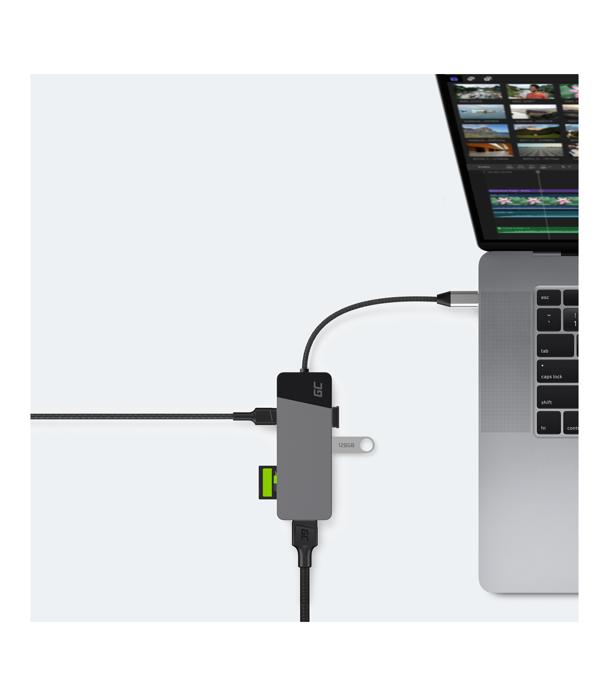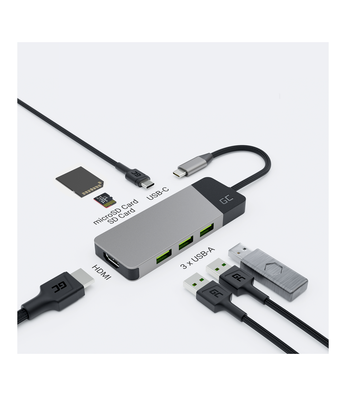 GREEN CELL HUB USB-C ADAPTER GC CONNECT 7W1 (3XUSB 3.1, HDMI 4K 60HZ, USB-C PD 85W, MICROSD/SD)