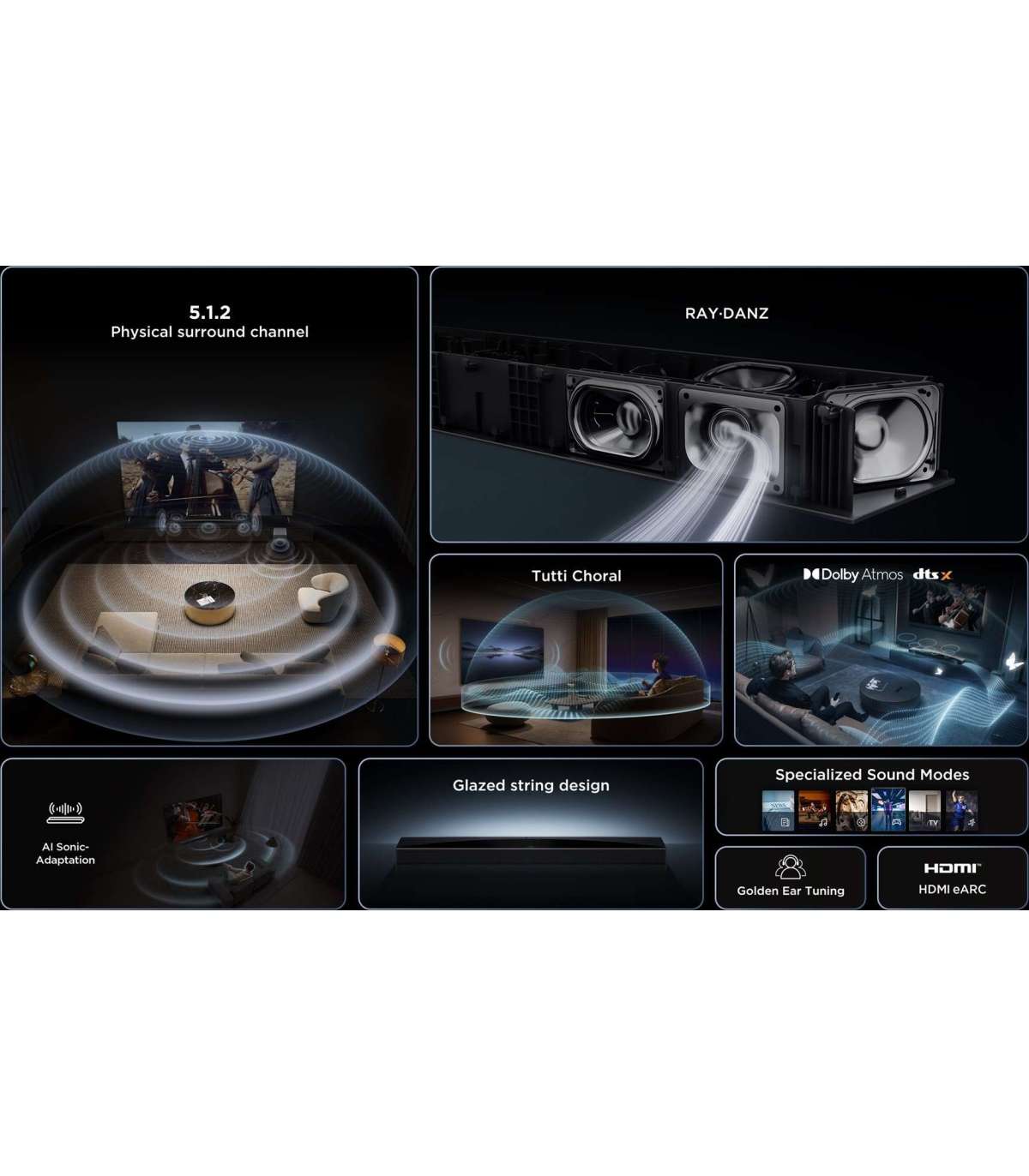 TCL Q Q75H Class 5.1.2 Channel Sound Bar with Dolby Atmos, Ray Danz Technology, and Wireless Subwoofwer