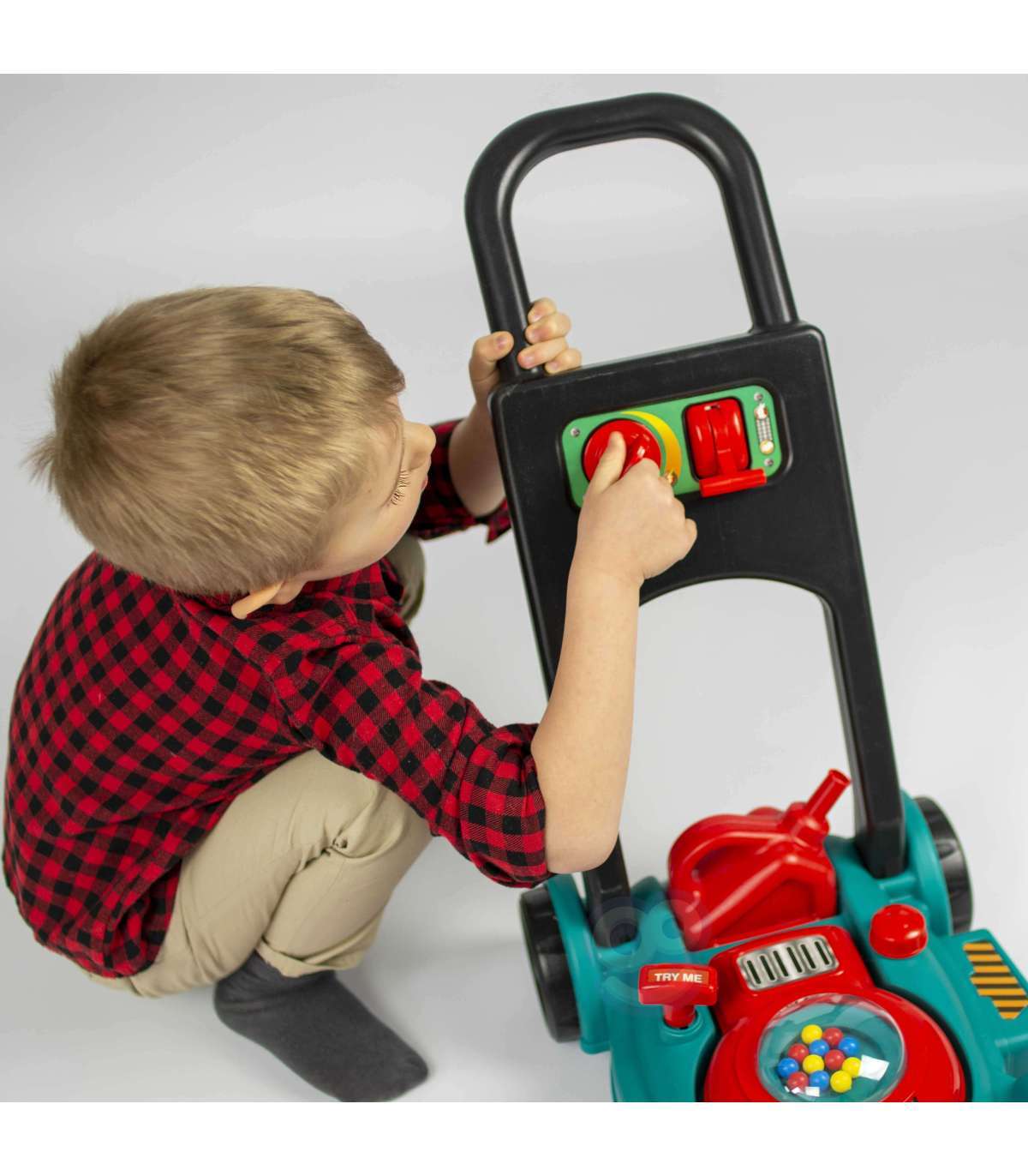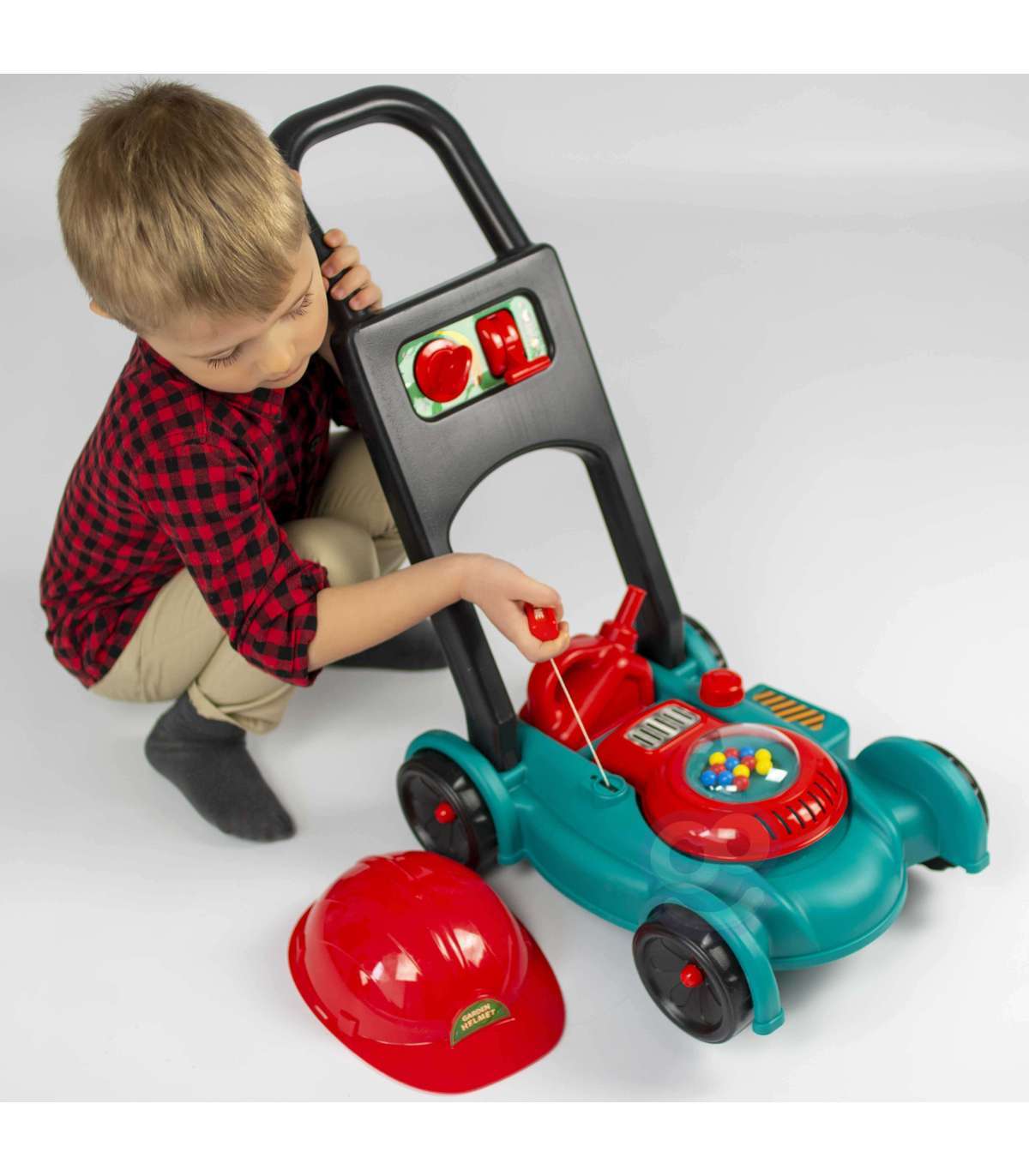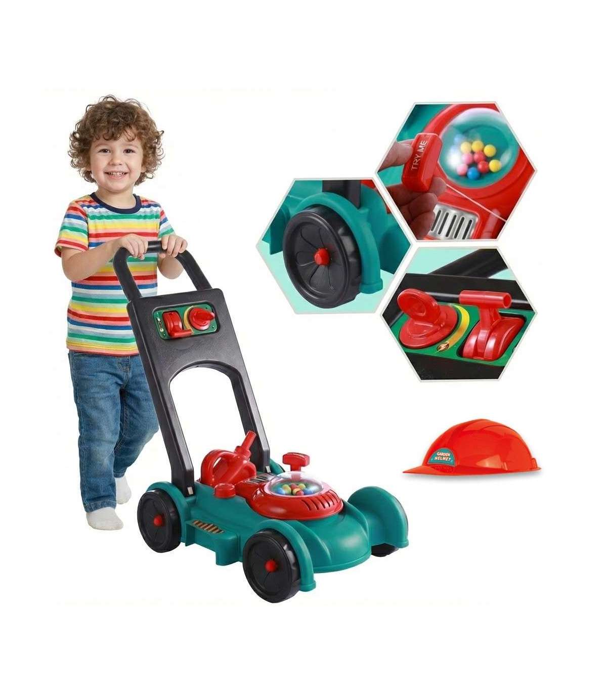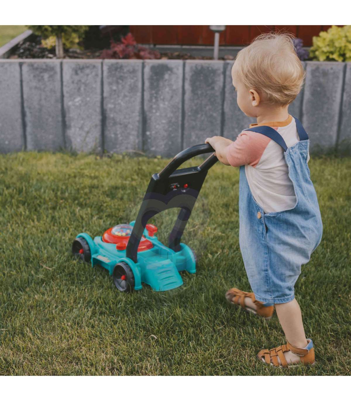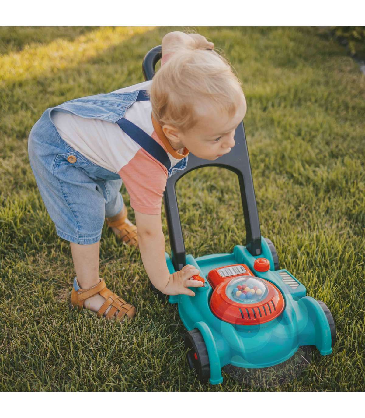 Веселая игра на свежем воздухе может стать ещё более интересной и привлекательной благодаря игрушечной газонокосилке. Игрушка не только научит ребёнка, как ухаживать за газоном, но и повеселит малышей и вызовет искреннюю улыбку благодаря цветным шарикам, которые гремят при езде. У косилки есть колёса, которые с лёгкостью будут преодолевать маршрут, выбранный ребёнком. Идеальный набор, чтобы подражать своему родителю!