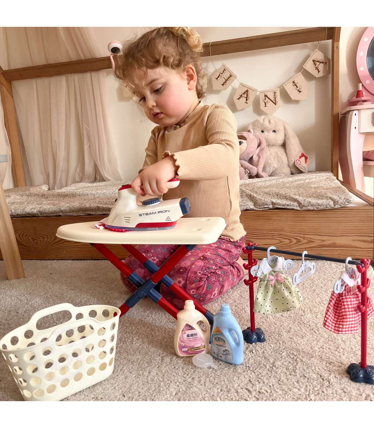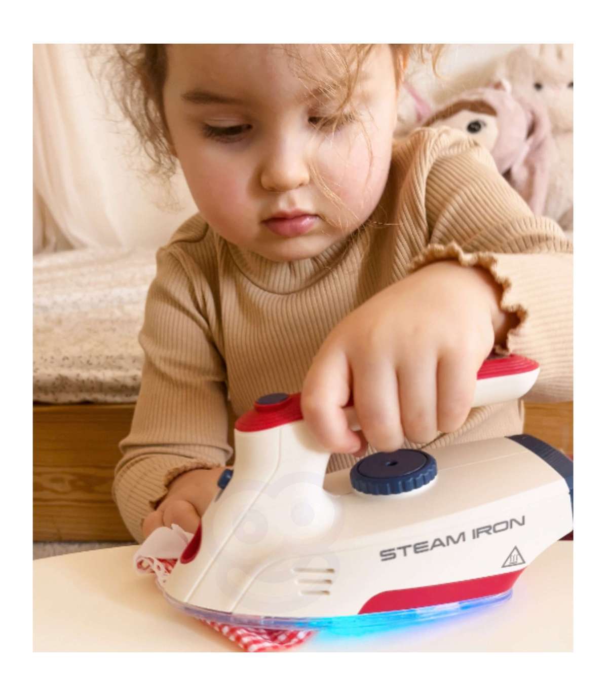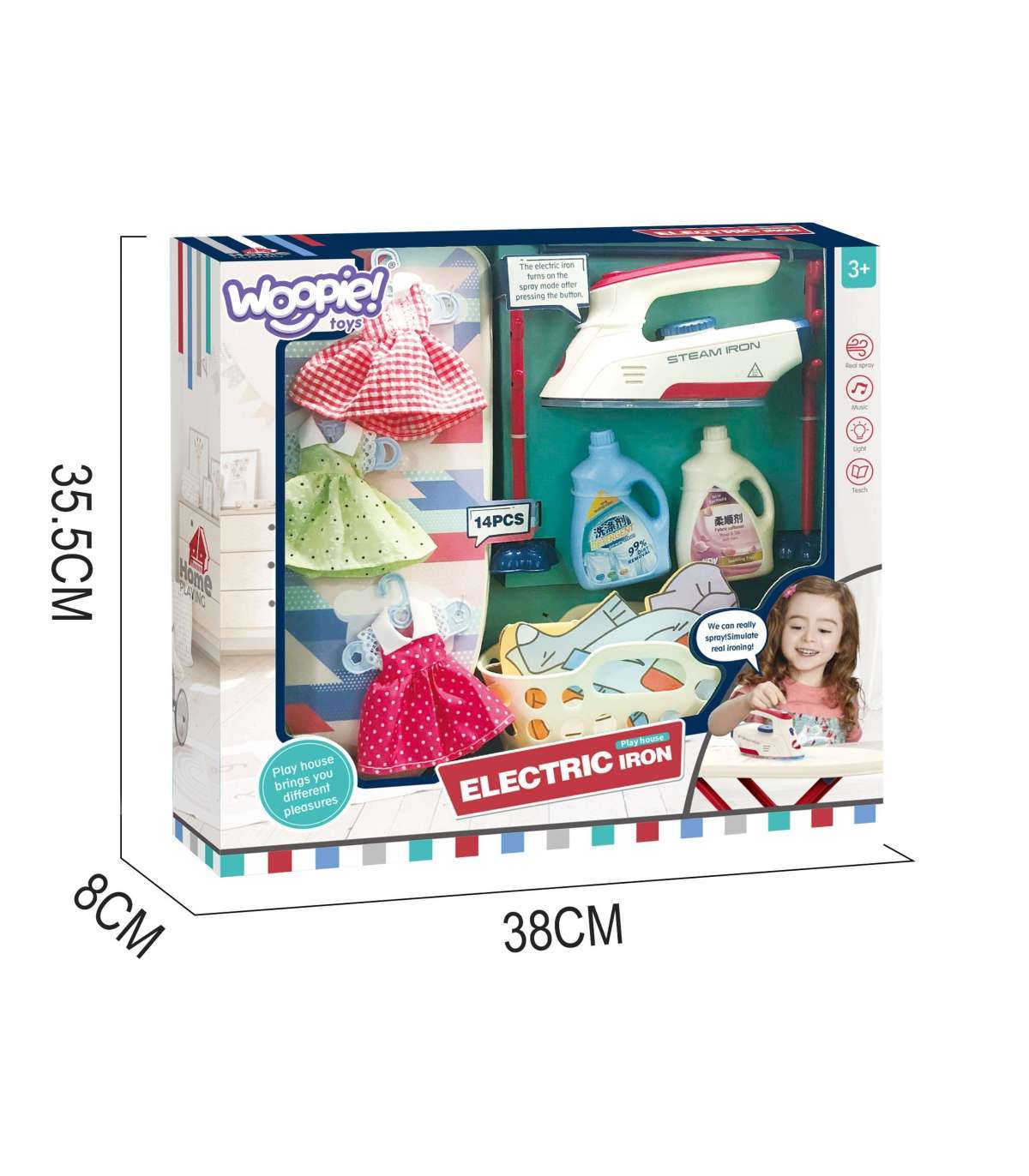 Набор для глажки от бренда WOOPIE подарит ребёнку много удовольствия в игре в маленькую хозяйку. В наборе: утюг, гладильная доска, корзина для белья, напольная вешалка, три маленьких платья для кукол и две упаковки стирального средства. Утюг — игрушка, безопасная для детей, так как не нагревается. Он оснащён многими функциями, которые разнообразят игру: кнопка на ручке утюга, которая при нажатии и удерживании воспроизводит звуки настоящего глажения, светящаяся светодиодная лампочка и звуковые эффекты в виде песен. Это отличный набор для детей, которые любят подражать родителям в повседневных делах.