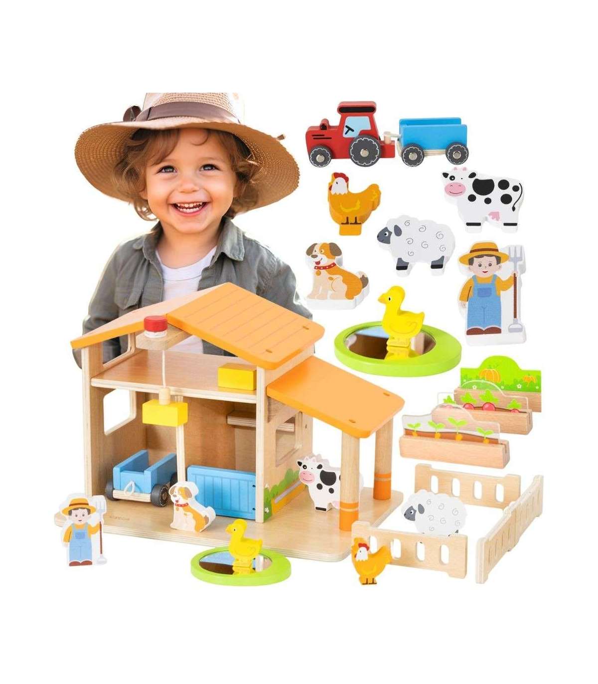VIGA деревянная ферма — дом фермера с огородиком и трактором, 21 деталь