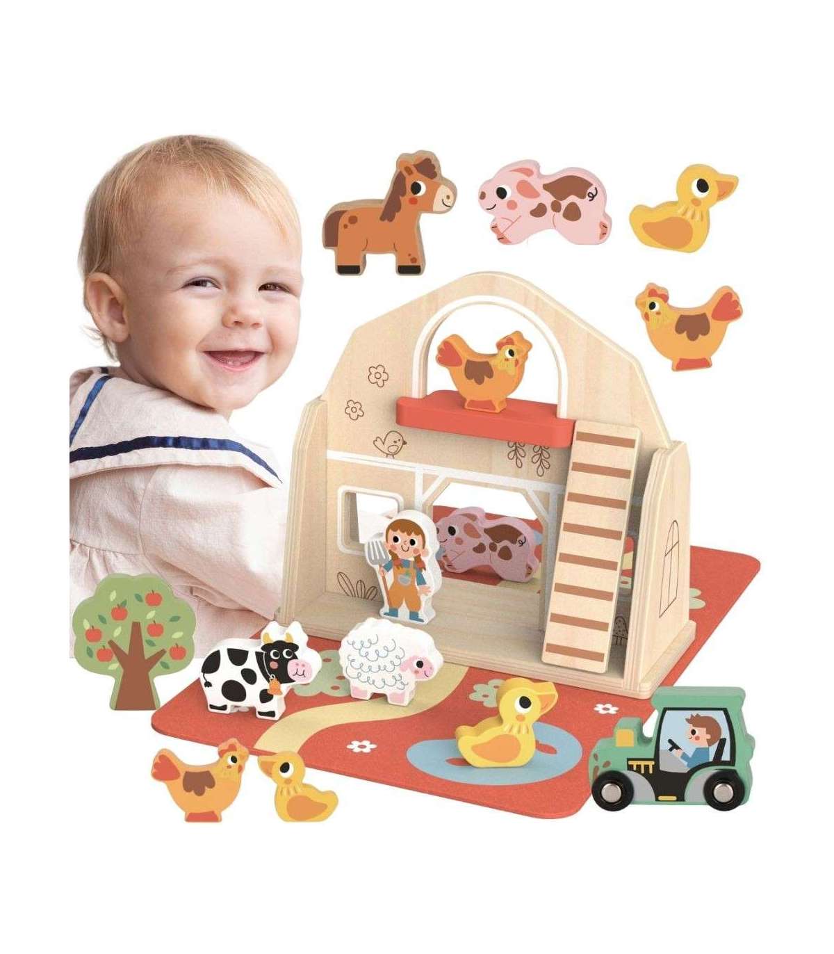 TOOKY TOY Деревянная складная ферма в чемоданчике с животными