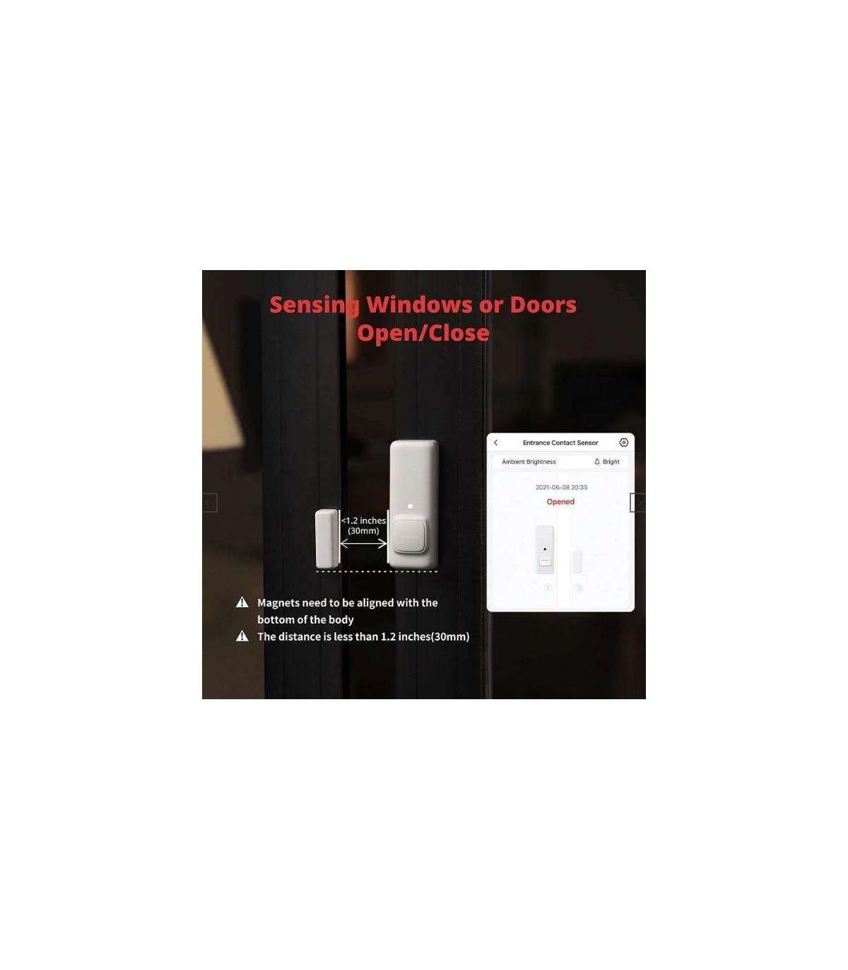 SwitchBot Contact Sensors is made up of two components that are fixed close to each other on things such as doors and windows. With a detection range of up to 16.4 ft (5m), 90° horizontally, and 55° vertically, any movements that your door or window makes can be detected to help notify you when contact takes place. Just simply align the magnet area with the bottom of SwitchBot Contact Sensor’s main body, and you’re good to go.