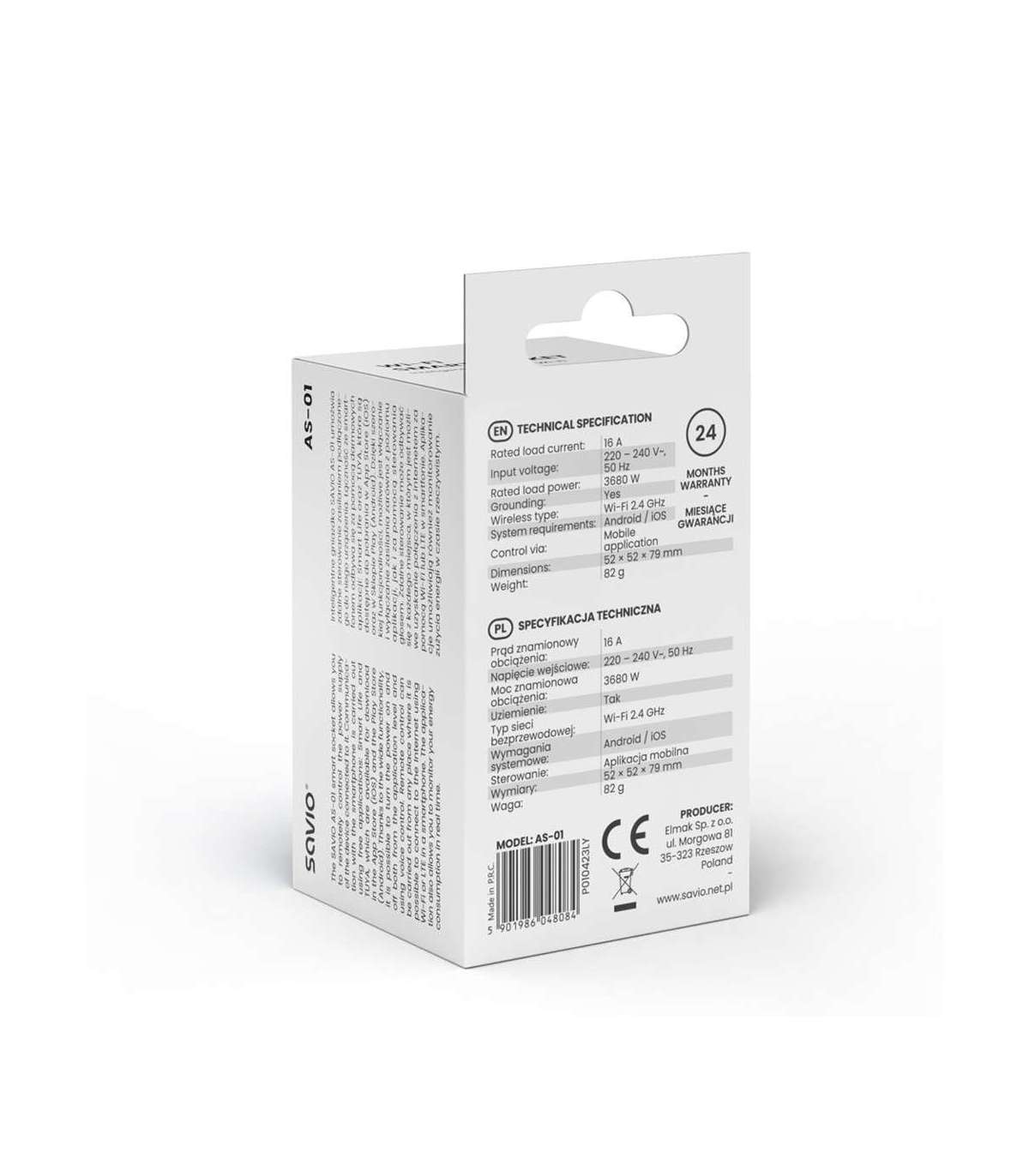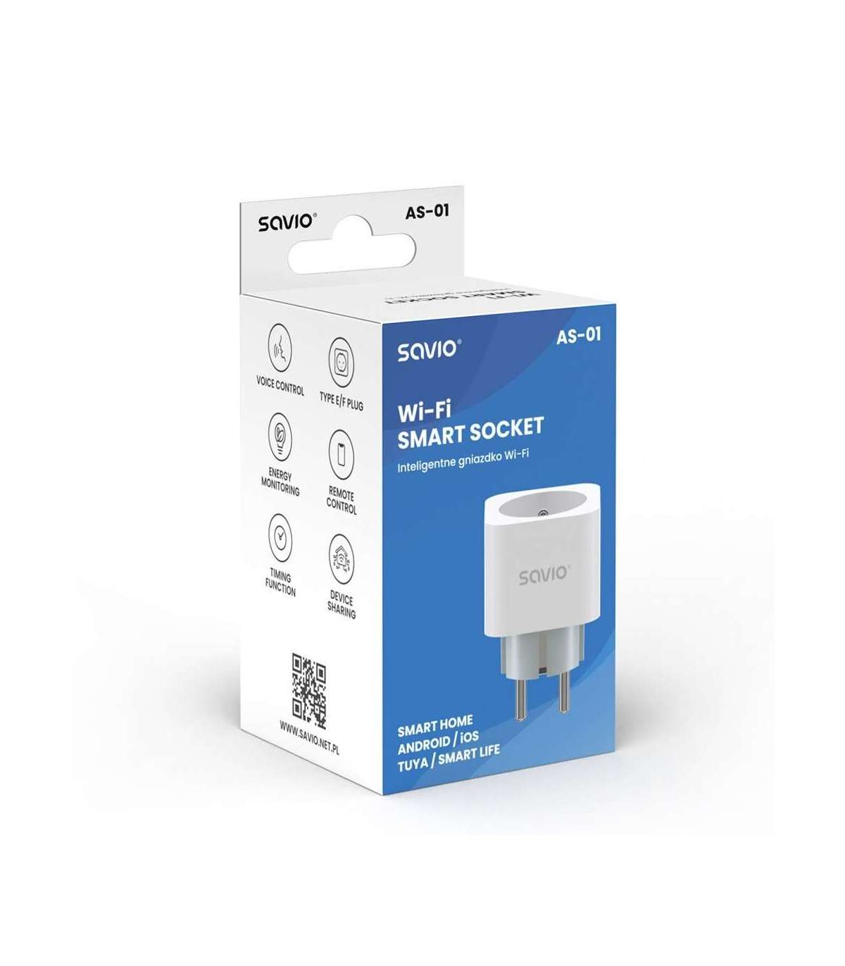 SAVIO WI-FI smart socket, 16A, AS-01, White