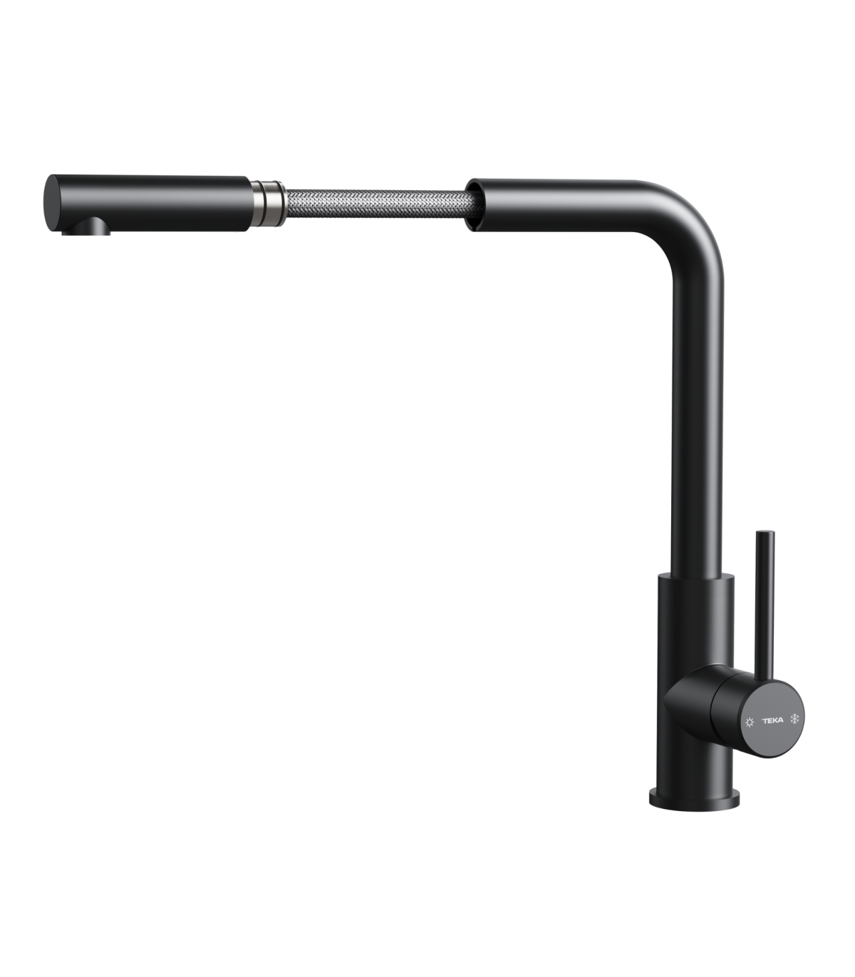 - Durable pull-out hose with hidden pull-out handle