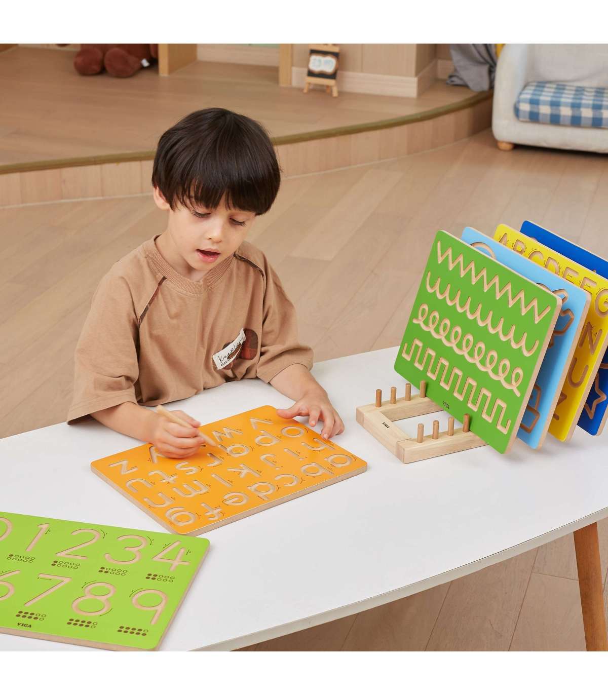 Tablica kreślarska od marki VIGA to idealna propozycja dla dzieci do trenowania rączki przed nauką pisania. Delikatnie wygrawerowane i zakrzywione rowki sprawiają, że idealnie nadaje się dla dzieci do kontrolowania ruchu dłoni i kształtowania pamięci mięśniowej poprzez wielokrotne śledzenie. Tablica jest dostępna w kompaktowych rozmiarach, dzięki czemu dzieci mogą ją trzymać i używać na stole lub biurku.Dziecko poprzez zabawę uczy się ruchów odpowiedzialnych w przyszłości za rysowanie i pisanie, kształci płynność ruchów oraz ćwiczy koordynację wzrokowo - ruchową.