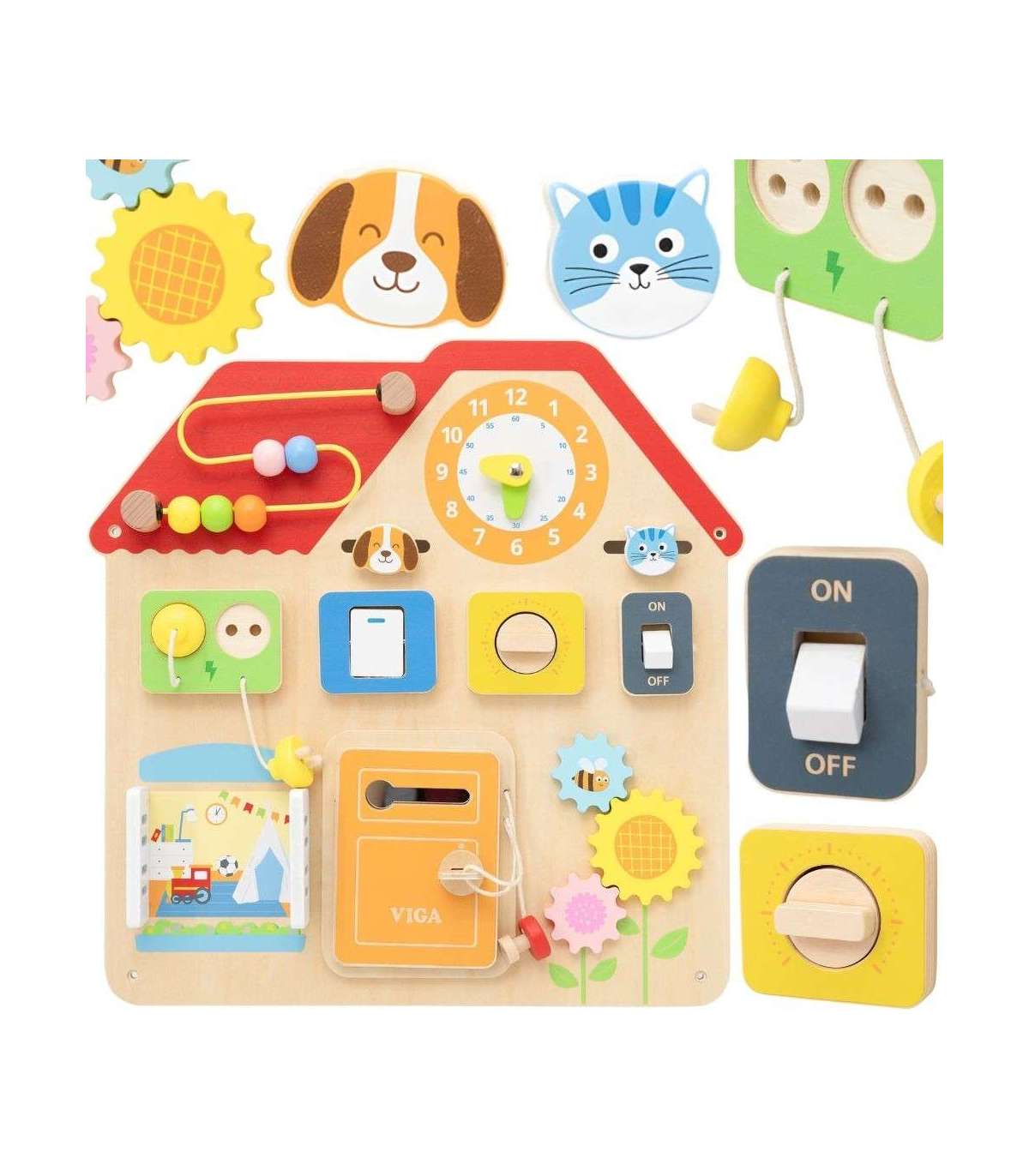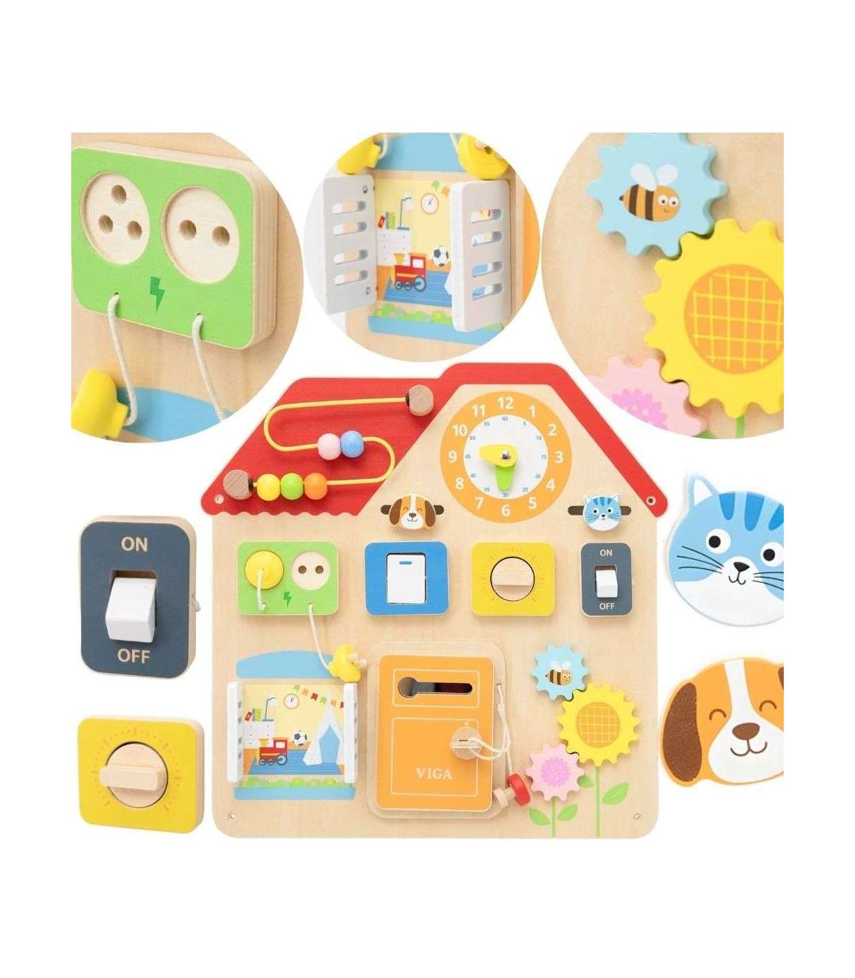 VIGA Drewniana Tablica Manipulacyjna Domek Odkrywania i Nauki