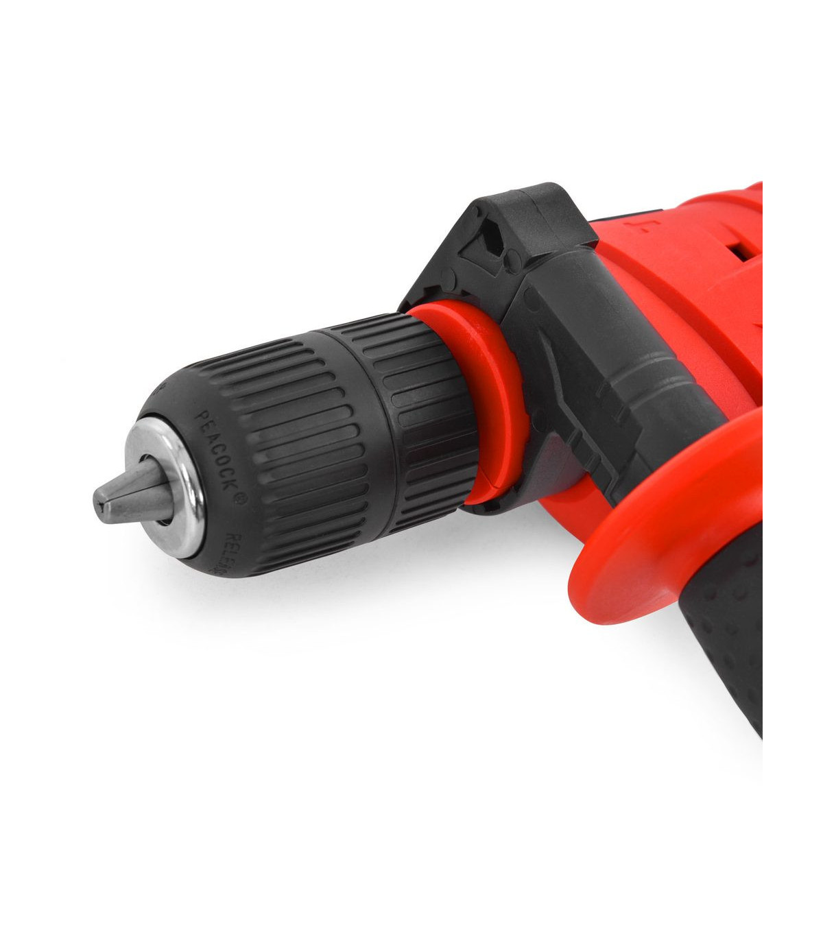 Võimsus 750 W Pinge: 230V/50Hz Tühikäigupöörded: 0-3000 p/min Löökide arv 0-54000/min Metalli puurimise max läbimõõt 13 mm Elektrooniline kiiruse reguleerimine lülitil Parem/vasak juhtimine Puurimissügavuse mõõtur Võimalus lukustada lülitit, kui töötate rasketes või kitsastes kohtades Kaks puurimisrežiimi: puidu, plasti, metalli puurimine või haamer betooni puurimiseks jne. Kaal 1,85 kg
