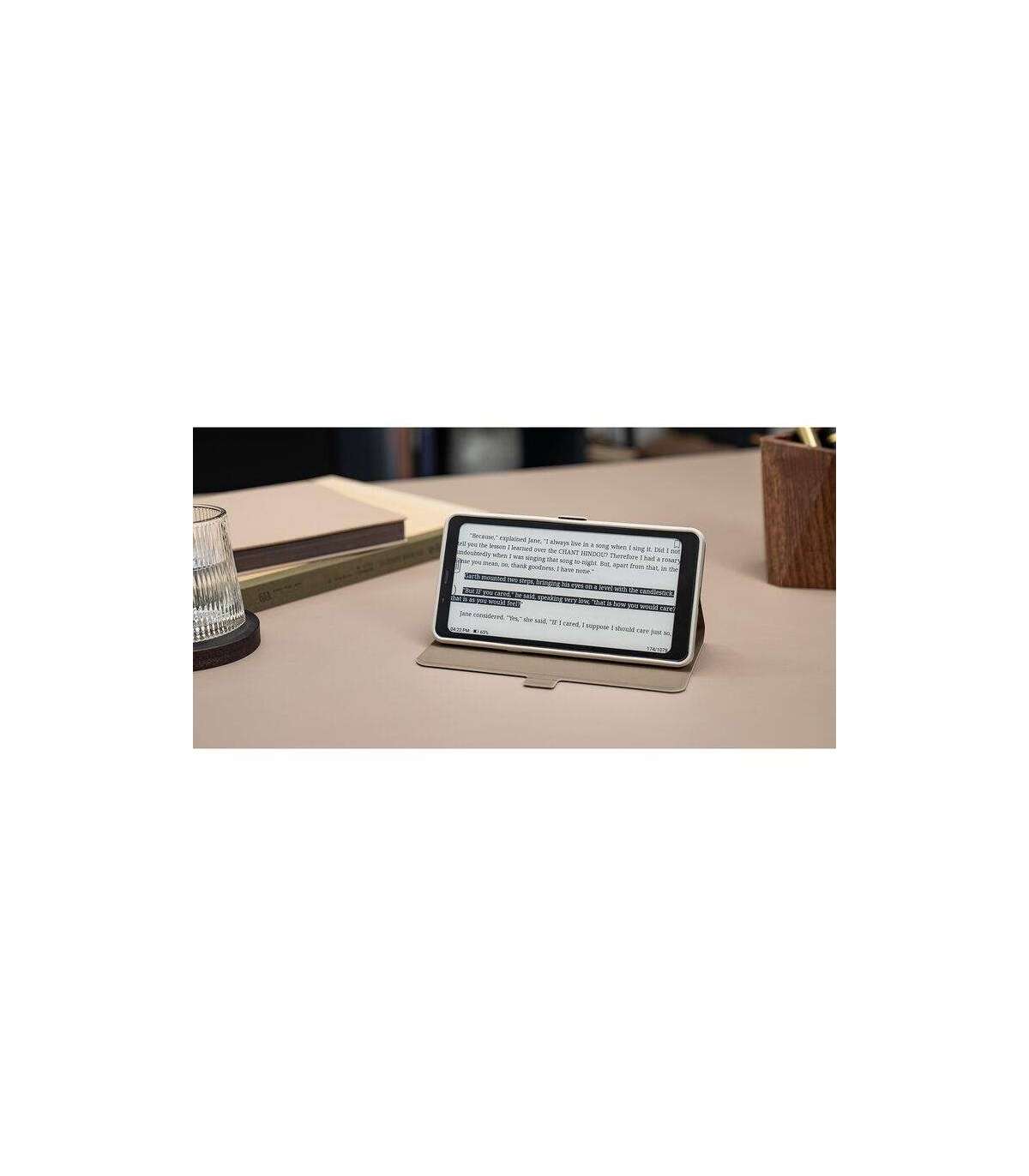 Made of durable PU with a silky finish and a leather texture, the Boox Flip-Fold Protective Case is designed to protect your 6.13" Palma E-Ink tablet. This protective case features raised bezels to protect the screen and camera from drops and scratches. The case features a flip that provides protection and also functions as a flexible kickstand for hands-free viewing.