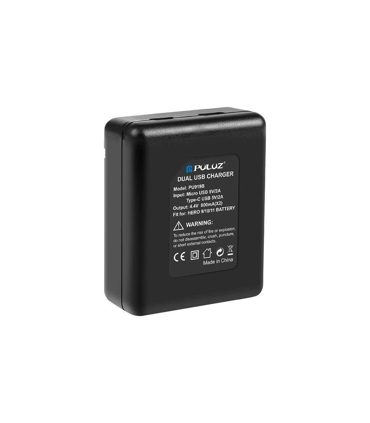 Puluz PU919B dual slot charger for GoPro Hero 12 / Hero 11 / Hero 10 / Hero 9.