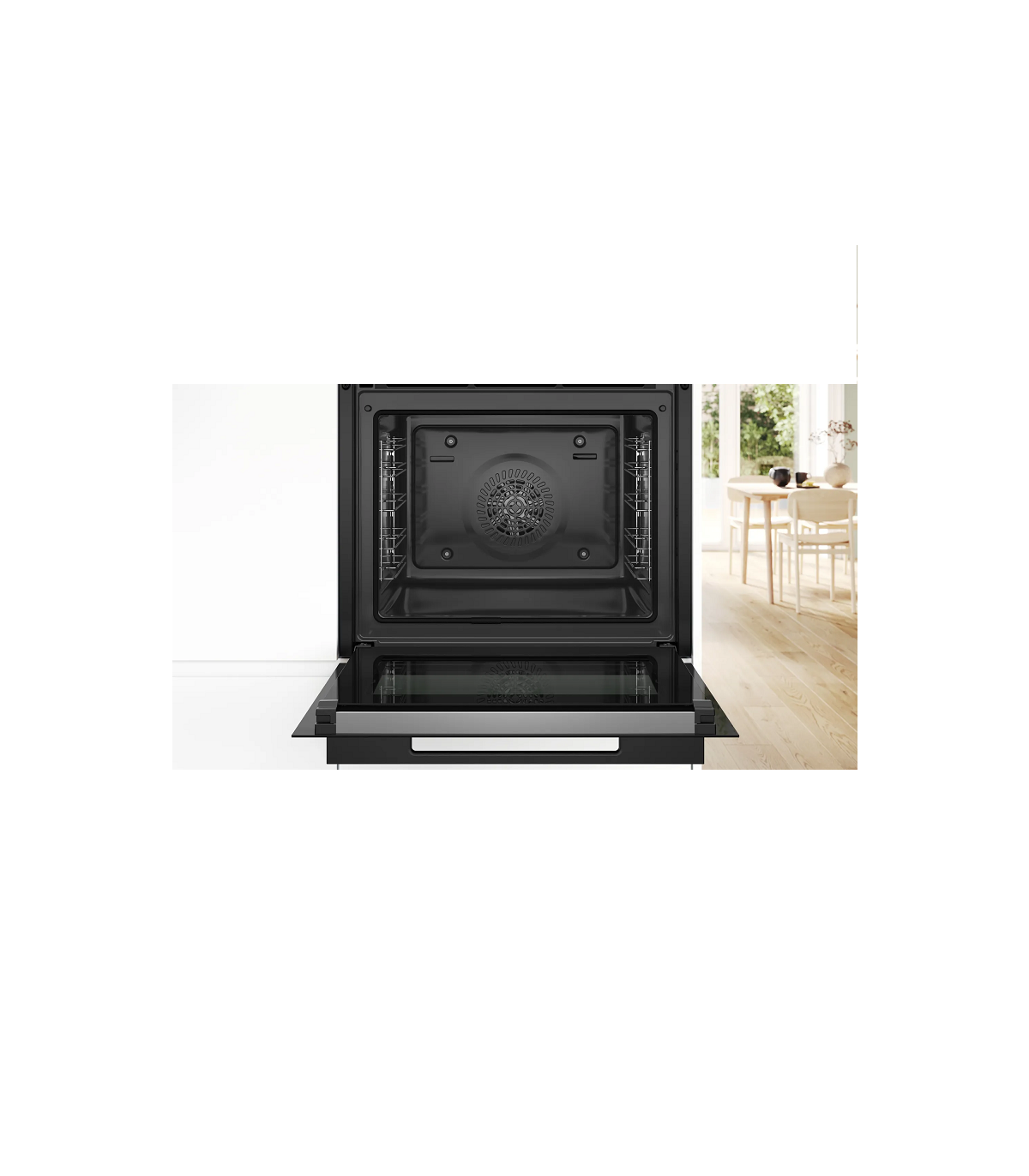 Pole vahet, kas eelistate rostbiifi vähe-, keskmiselt või läbiküpsetatud kujul – tänu integreeritud lihatermomeetrile saavutate liharoogade puhul alati soovitud valmidusastme, kuna termomeetris olev andur mõõdab pidevalt liha sisetemperatuuri. Lisaks on lihatermomeeter ühendatud ahjuga ja seetõttu ei ole vaja ahju käsitsi reguleerida. Kui saavutatud on soovitud sisetemperatuur, kõlab helimärguanne ja ahi lülitub automaatselt välja. Tulemuseks on pingutuseta valminud täiusliku küpsusastmega liharoog.