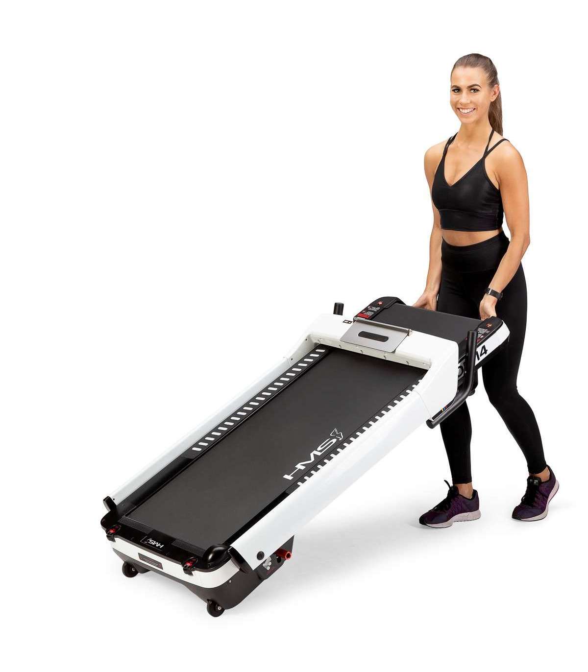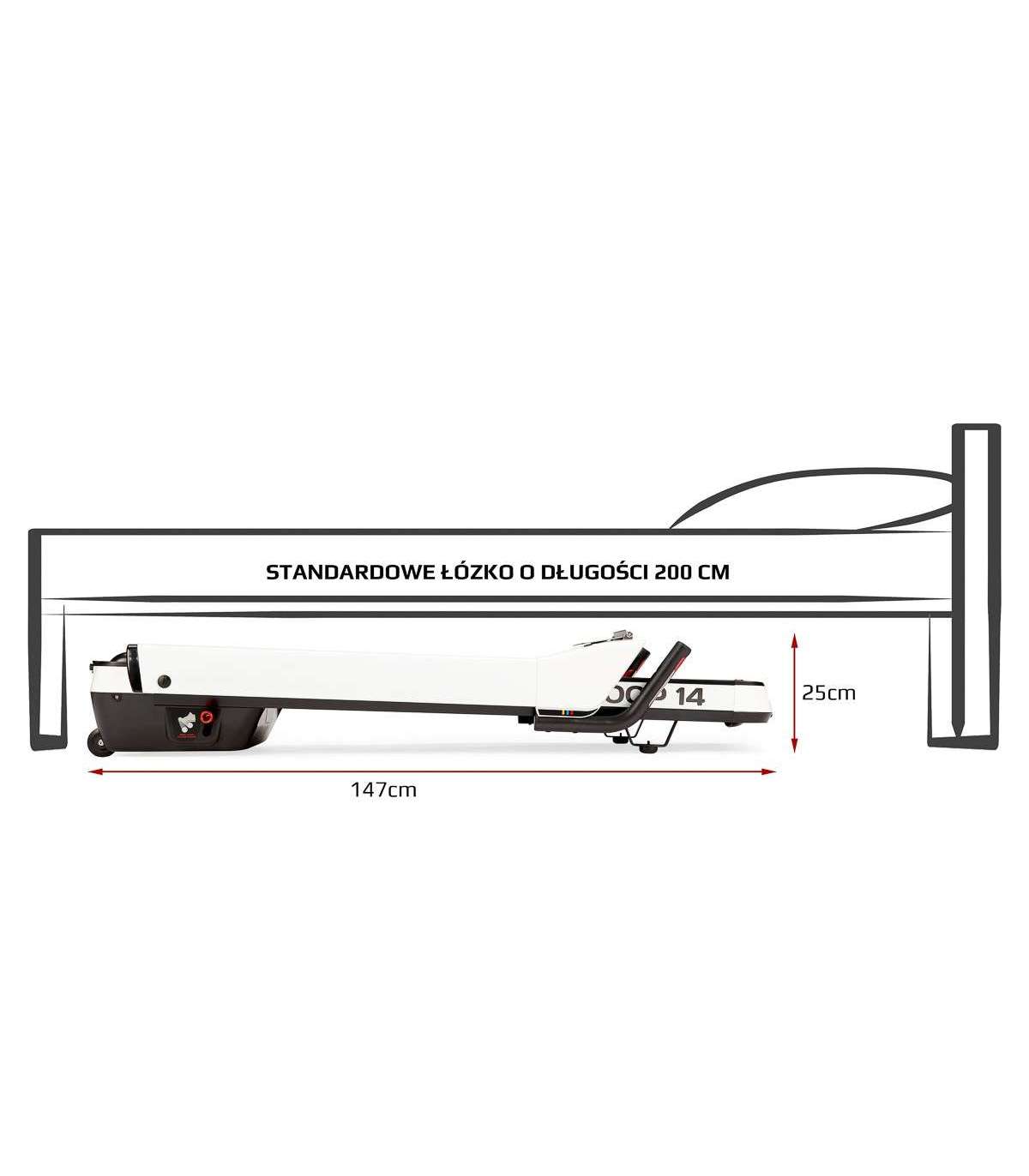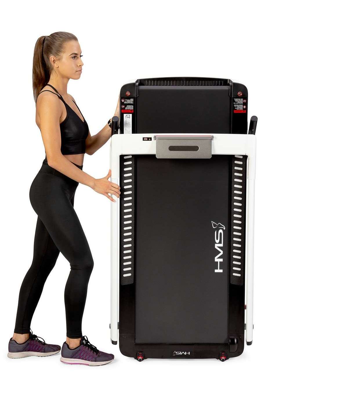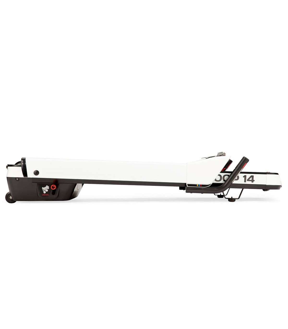 Дополнительным преимуществом беговой дорожки является её размер, так как модель LOOP14 занимает немного места благодаря складывающемуся поручню. Поручень складывается автоматически после освобождения замка и лёгкого нажатия. Механизм блокировки находится внизу беговой дорожки, так что вы можете удобно освободить замок, нажав на него ногой. Перемещение устройства также не будет проблемой: благодаря установленным транспортным колесам мы можем перемещать беговую дорожку вертикально и горизонтально без особых усилий. С этой беговой дорожкой вы можете тренироваться где и когда хотите, не беспокоясь о нехватке пространства или неудобстве transporta. LOOP14 адаптируется к вашим потребностям и условиям.