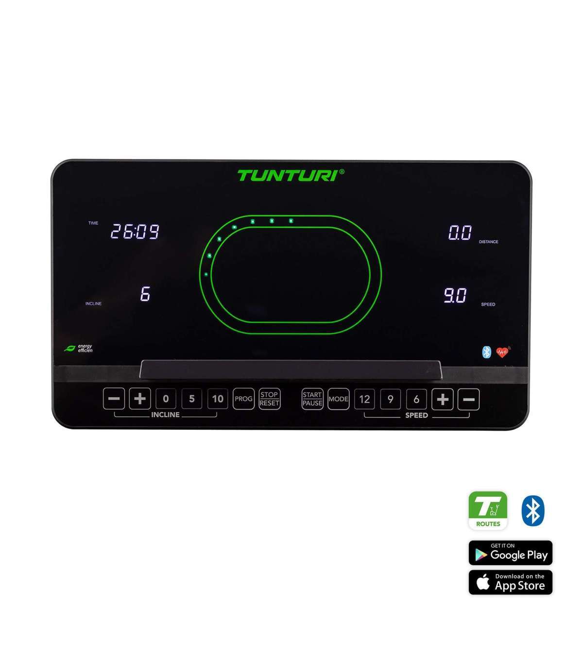 Мощная беговая дорожка Tunturi Performance T5044 программы тренировокГрафическое отображение профилей тренировокЭлектронная 15-ступенчатая регулировка угла наклонаВозможность подключения к приложению Tunturi Routes