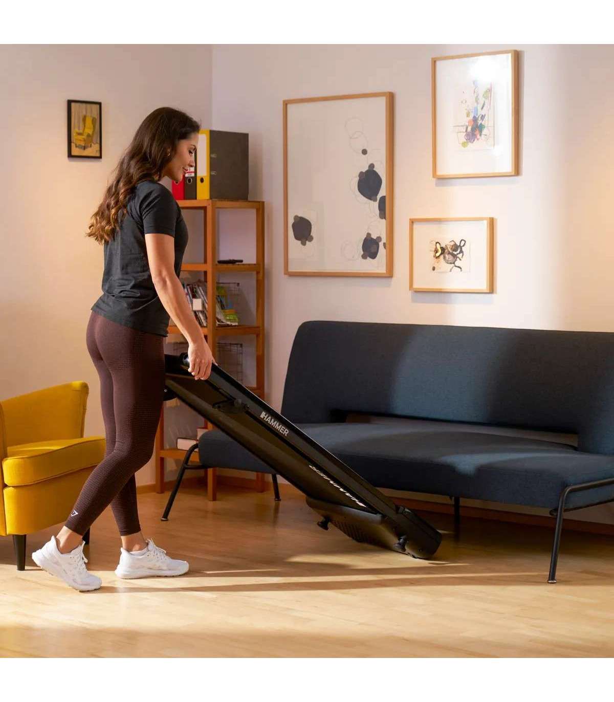Самая компактная беговая дорожка в вашем домашнем офисеБеговая дорожка Hammer Walk 2.0 - идеальное решение для активной работы в офисе или дома: она бесшумна, занимает мало места и проста в использовании. Скорость от 1 до 6 км/ч и удобные транспортировочные колеса позволят вам без труда включить движение в свой распорядок дня. ЖК-пульт дистанционного управления позволяет удобно управлять всеми функциями. Превратите сидячую работу в активную тренировку!Легкую и компактную беговую дорожку легко разместить там, где вам нужно, и очень просто убрать после использования!Размеры 130 x 60 x 16 см делают Walk 2.0 самой компактной беговой дорожкой в своем классе при сохранении высокого качества.Благодаря передовой технологии амортизации и тихому двигателю вы можете заниматься, не мешая окружающим.Подробнее:Экран: LEDСветодиод: светодиодный дисплейДвигатель: двигатель постоянного тока 1,25 л.с. (максимальная мощность 1,75 л.с.).Размер бегового полотна: 105 x 42 смСкорость: 1 - 6 км/чНаклоны: 2 регулируемых вручную, 0-2,5° 105 м /5,5° наклонРазмеры: 128 x 58 x 16 см.Вес изделия: 28 кг