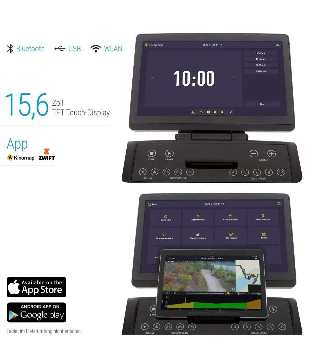 Ищете беговую дорожку, отвечающую всем вашим требованиям? Она должна быть современной и иметь большой сенсорный экран? Тогда выбирайте беговую дорожку Hammer Q. VADIS 10.0! Тренируйтесь в комфорте собственного дома и установите новый личный рекорд. Q. Продуманные функции беговой дорожки VADIS 10.0 принесли ей звание победителя ETM TEST 11/2021 и, несомненно, заставят сердце любого бегуна забиться.Производитель - компания Hammer.Дополнительная информация:Экран: 15,6-дюймовый сенсорный TFT-дисплейПрограммы тренировок: 44Двигатель: 3 л.с. (макс. 7,5 л.с.)15 ,5 Л.С., 15,5 Л.С., 15,5 Л.С., 15,5 Л.С., 15,5 Л.С., 15,5 Л.С., 15,5 Л.С., 15,5 Л.С., 15,5 Л.ССкорость: 0,3 - 22 км/ч.Наклоны: 12 (электронная регулировка).Размеры: 181 x 83 x 143 смРазмеры в сложенном состоянии: 74 x 83 x 170 смВес изделия: 95 кгМаксимальный рабочий вес: 150 кг