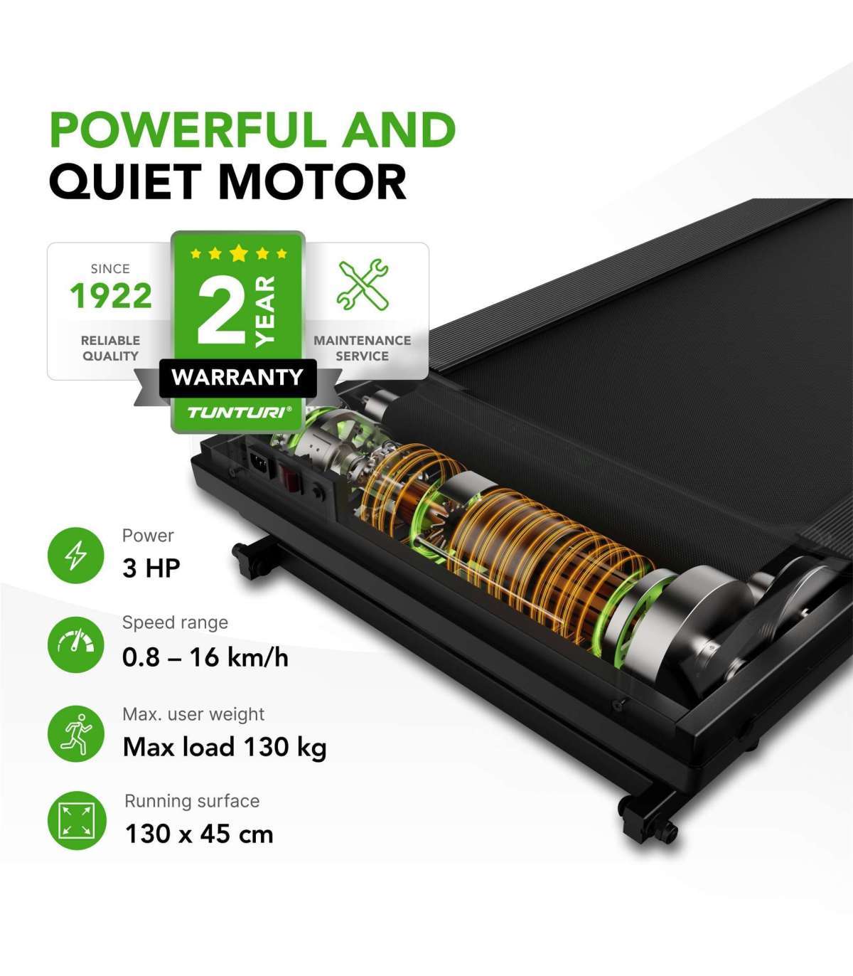 Беговая дорожка Tunturi Cardio Fit T50 - это надежный и удобный домашний тренажер. Она бесшумна, стабильна и предлагает множество разнообразных и сложных упражнений - подходит как для ходьбы, так и для интенсивного бега.Производитель - Tunturi.Дополнительная информация:Экран: LEDБеговая дорожка: LED: светодиодный дисплейДвигатель: 3,0 л.сСкорость: 0,1-16 км/ч (0,1-16 миль/ч)Наклоны: 15 (электронная регулировка)Размер бегового полотна: 130 x 45 см.Размеры: 160,5 x 77 x 131,5 смРазмеры в сложенном состоянии: 96 x 77 x 138 см.Вес изделия: 63 кгГрузоподъемность: 130 кг