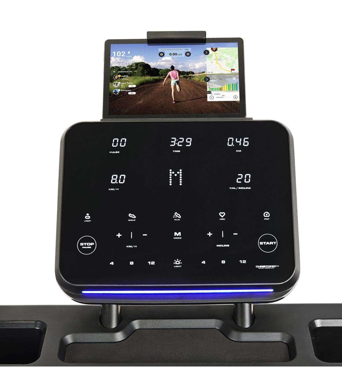 The Christopeit TM 4500 S treadmill is designed for intensive training with innovative technology. Start an effective and versatile workout with the TM 4500 S treadmill, suitable for beginners and advanced exercisers. The combination of a powerful motor, a modern screen and a comfortable treadmill makes this treadmill a reliable partner for your daily workout. The Christopeit TM 4500 S is equipped with a Bluetooth system, so you can use your favourite training apps like Zwift and Kinomap with it. In addition, this treadmill has an automatic oiling system that makes this treadmill a virtually maintenance-free machine. Integrated speakers offer the possibility to listen to your favourite music while exercising. The manufacturer is Christopeit.More information:Display: LEDLED: LED displayEngine: 3.0 HPRunning track size: 130 x 48 cm.Speed: 1-20 km/h.Inclines: 15 (electronically adjustable)Dimensions: 177 x 80 x 137 cmDimensions when folded: 118 x 80 x 147 cmProduct weight: 69 kgMaximum operating weight: 130 kg