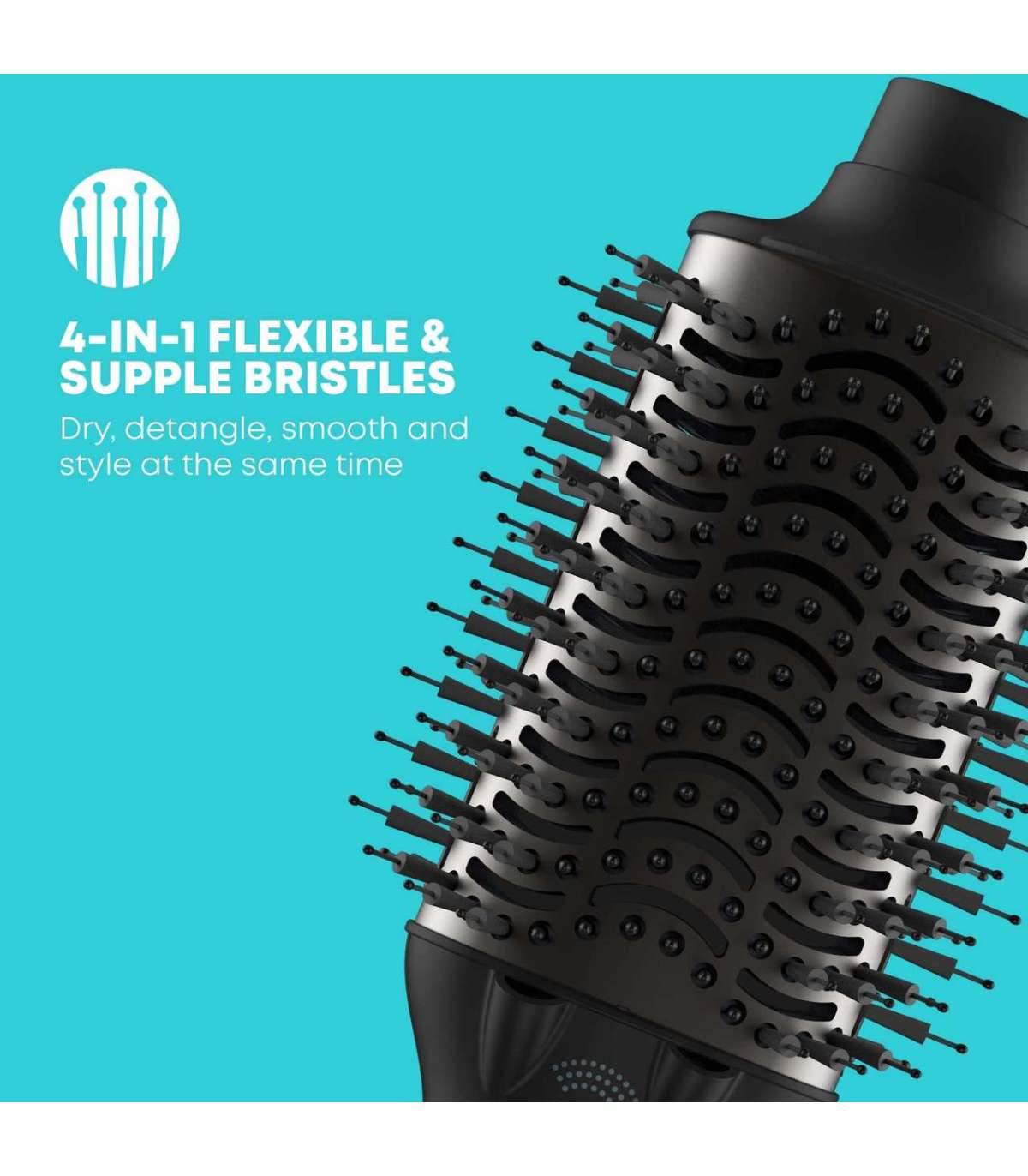 4-ühes Multifunktsionaalne stiiler kombineeritud painduvate ja elastsete harjastega Ideaalne kuivatamiseks, lahtiharutamiseks, silumiseks ja kujundamiseks samal ajal