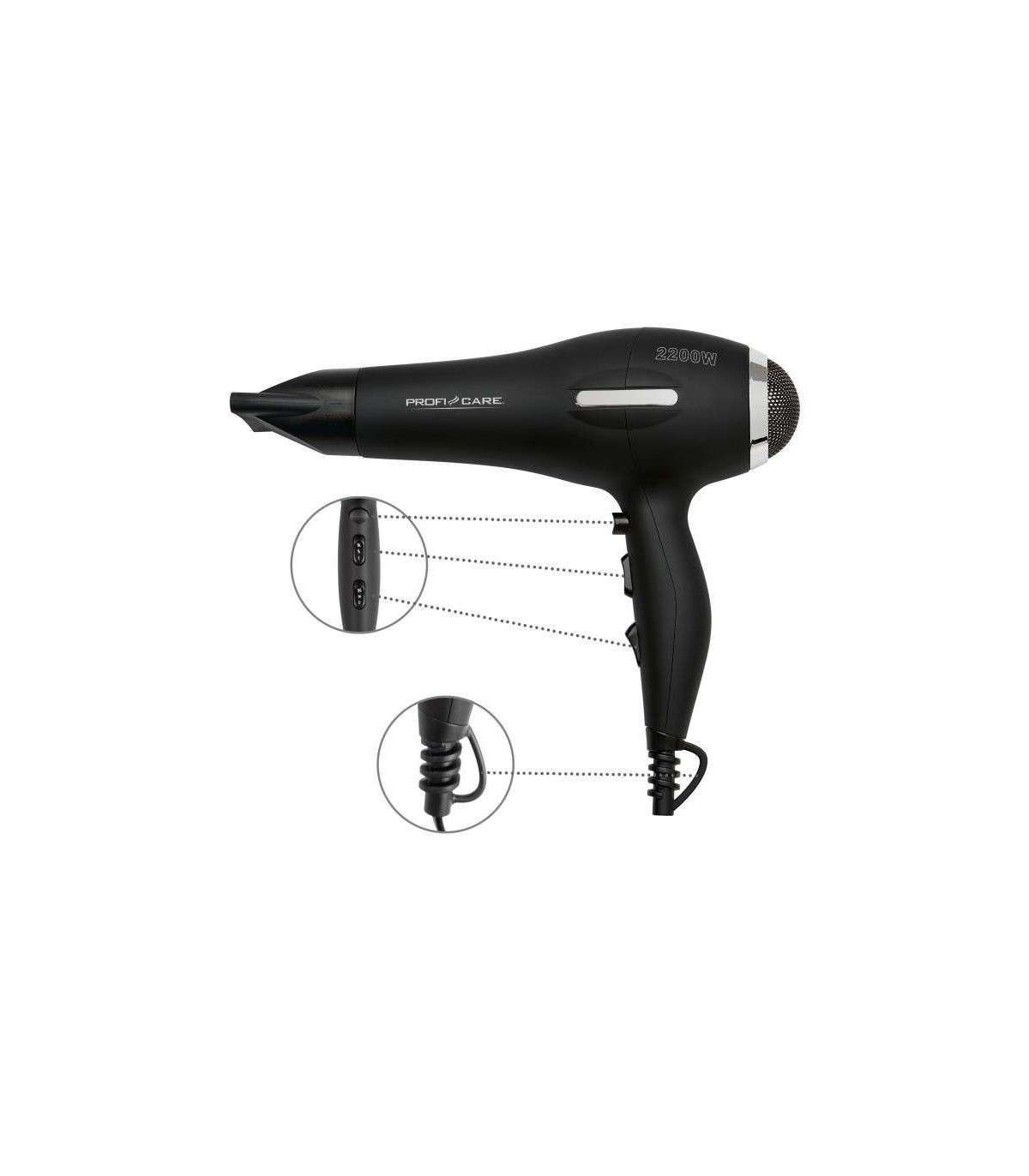 Hair dryer with a powerful motor, which is also suitable for use in hairdressing salons. Strong airflow dries quickly and efficiently.