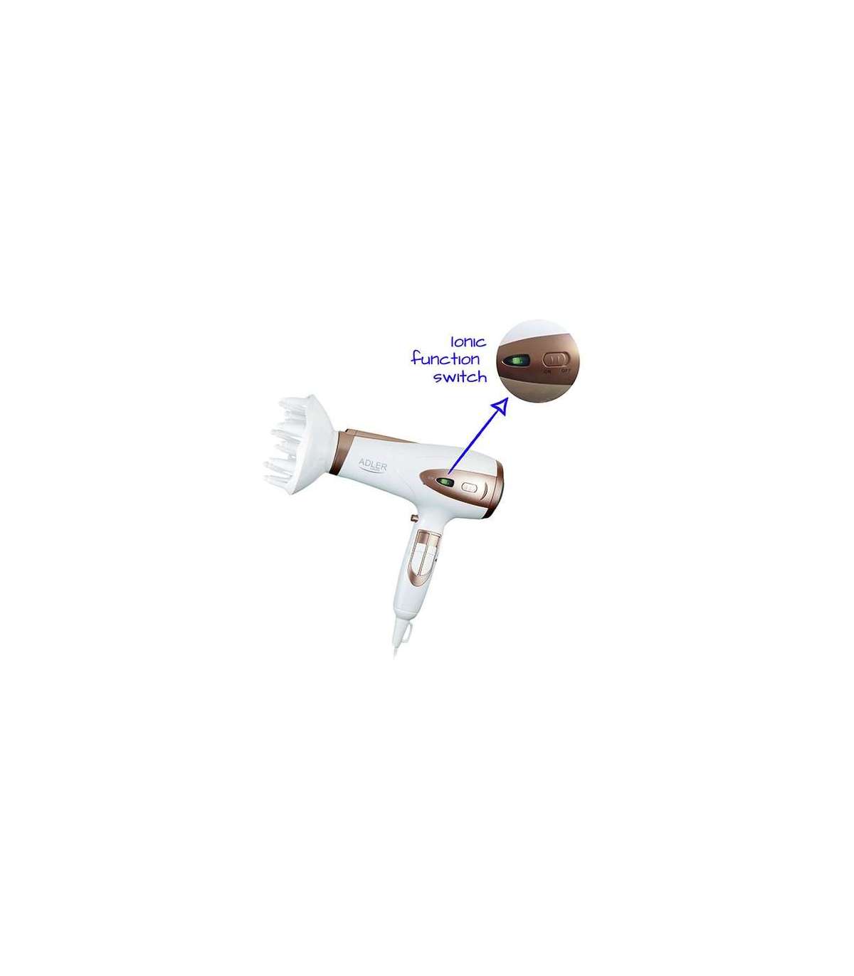 Adler | Hair Dryer | AD 2248 | 2400 W | Number of temperature settings 3 | Ionic function | Diffuser nozzle | White
