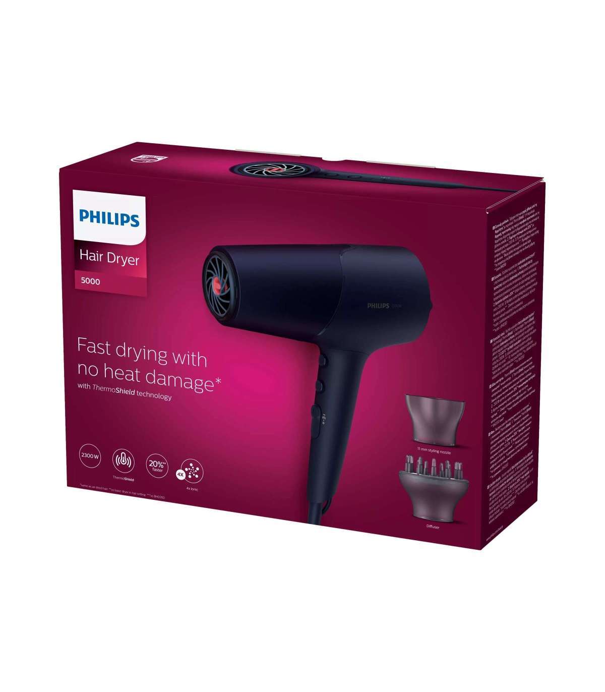 Philips Hair Dryer BHD510/00 2300 W Number of temperature settings 3 Ionic function Diffuser nozzle |