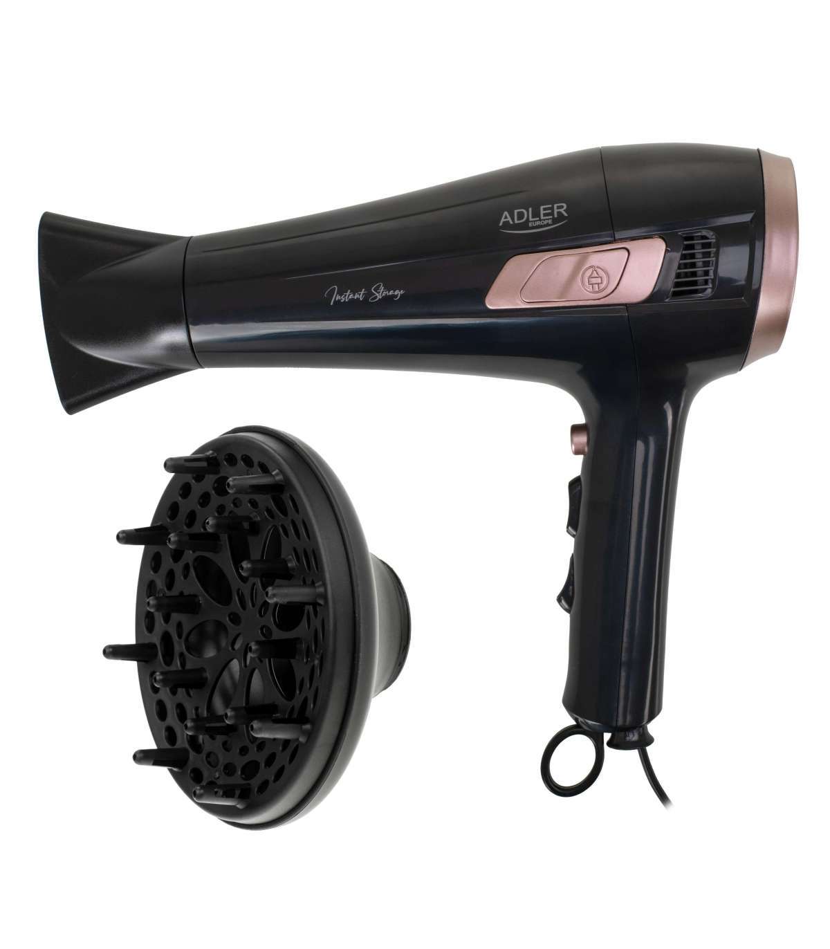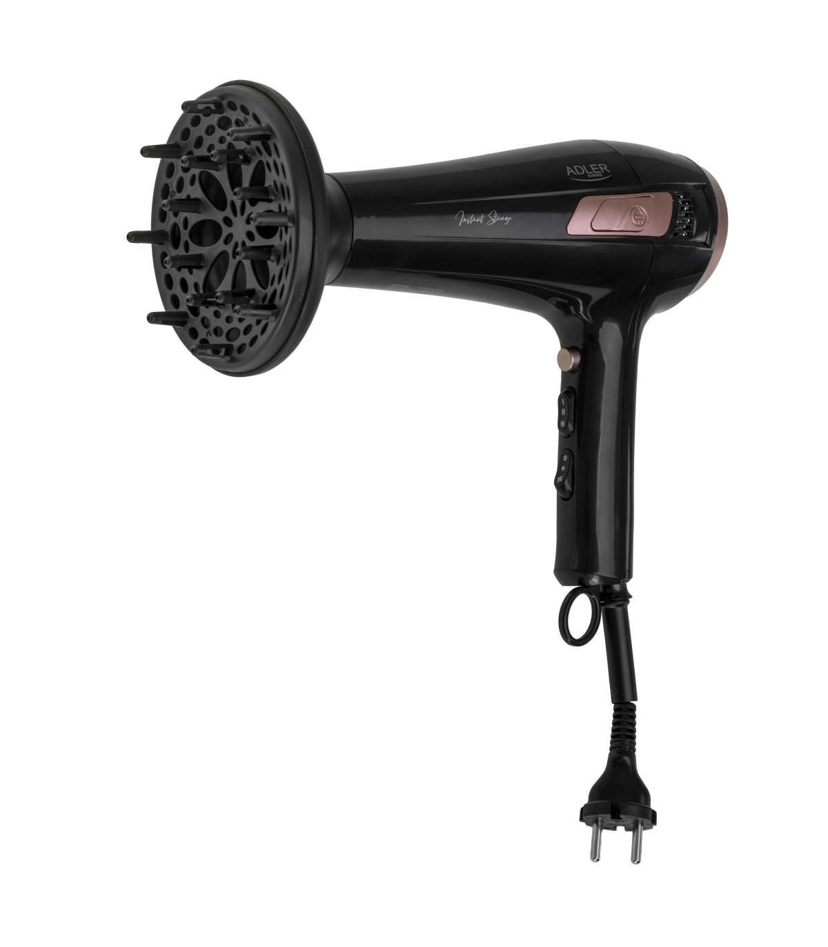 Adler Hair dryer with retractable power cord | AD 2283 | 2400 W | Number of temperature settings 3 | Diffuser nozzle | Black/Golden Rose