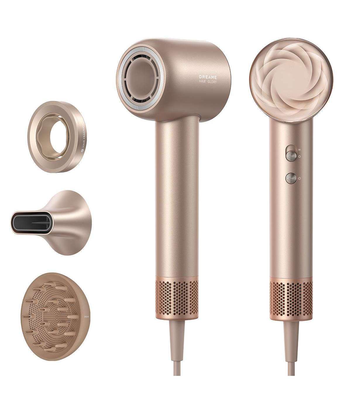 The Dreame Hair Glory Mix High-Speed Hair Dryer is a premium high-speed hair dryer that combines power, style and hair care. Equipped with a digital motor that rotates up to 110,000 rpm, it provides fast drying without overheating. Ionic technology reduces static electricity and adds shine to hair, and multiple temperature and speed settings make it easy to adapt the drying to any hair type.Elegant design