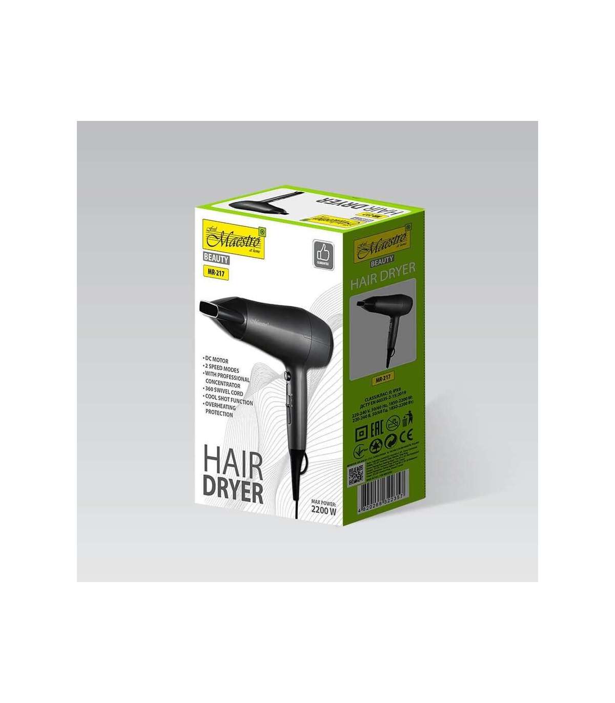 Hair dryer MAESTRO MR-217 2200 W Black, Graphite