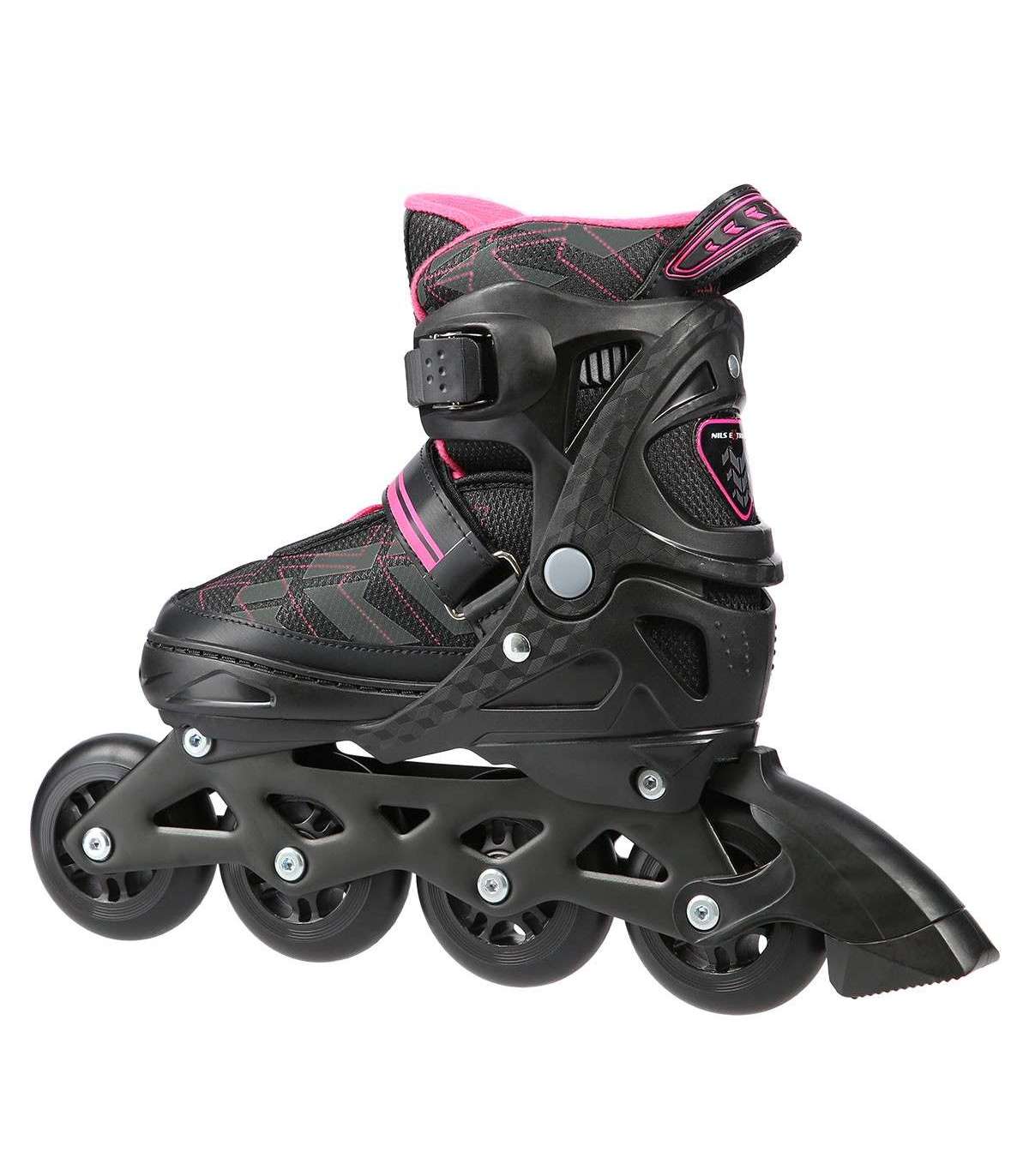 NA11002 Nils Extreme is a model of roller skates designed for beginners and intermediate enthusiasts of skating. It is a combination of interesting design and the highest quality materials ensuring high comfort of use.The boot is made of a synthetic leather, the velvet material, the MESH and the high density foam. This composition makes skating extremely comfortable. Moreover, the boot is ventilated. ABEC7 class bearings provide high quality traction.Soft wheels ensure good adhesion to the ground and they absorb all vibrations very well. The boot is equipped with a two-section buckle, Velcro and laces to ensure maximum safety while skating, and the brake made of the highest quality impact-resistant PP ensuring safe stop even at relatively high speeds.The size adjustment system makes it easy to adjust the size to a user's foot quickly, making that skates can be used many seasons!Specification:Skid: aluminumBearings: ABEC7Boot: semi-soft, with a vent systemShell: PPMaterial:VelvetMeshSynthetic leatherHigh density foamWheels:PU70 mm/82A (S 31-34)PU76 mm/82A (M 35-38)PU80 mm/82A (L 39-42)Snap:Two-section snap fastenerHooks and loopsLacingInner shoe length: 230-255 mmBrake: Impact-resistant PPRemarks:Not for the commercial use24 months warrantyImporter: Abisal Ltd. | Poland | 41-807 Zabrze | Pyskowicka Street 17 | e-mail: abisal@abisal.plAbisal Ltd.. declares that the products sold by the company are safe and meet the requirements contained in the Act on General Product Safety of December 12, 2003. (Journal of Laws of December 31, 2003)