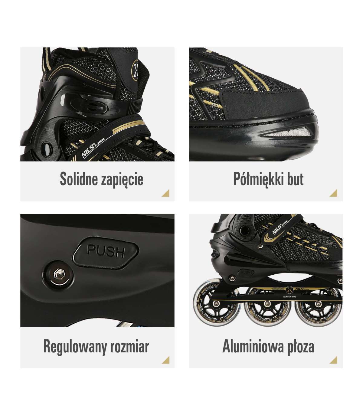 NA1128 черно-золотые, размер L (39-42) инлайн-ролики Nils Extreme