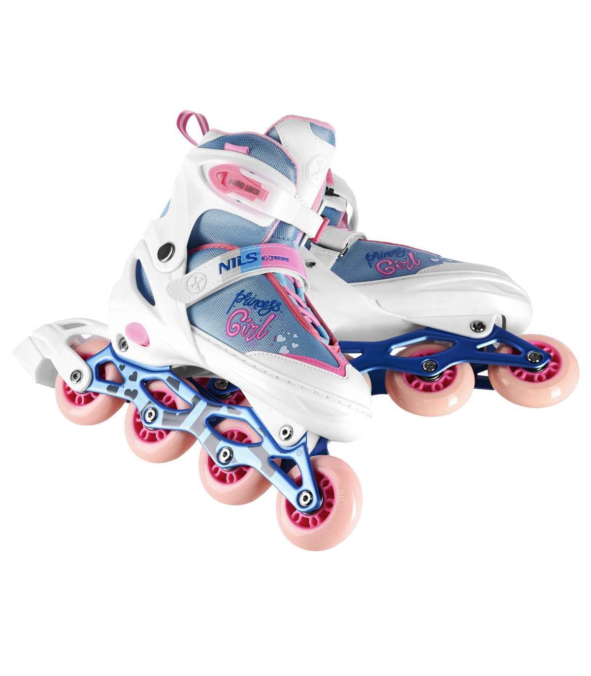 The PRINCESS NA18168A inline skates from NILS Extreme are the perfect blend of functionality, style, and durability, designed for both youth and adult users. Their attractive, modern design catches the eye, while robust materials ensure long-lasting use. These skates not only provide a comfortable recreational ride but also express individual style, making them an ideal choice for those who value quality and comfort during outdoor activities.SAFETY PRINCESS inline skates are designed with the user's maximum safety in mind. Equipped with an effective brake, they ensure secure stopping under any conditions, which is especially crucial in dense urban traffic. The polypropylene shell, resistant to impacts, serves as a protective shield for the feet. The durable material absorbs shocks and protects against the effects of accidental collisions, giving users peace of mind while riding.Fasteners, including a buckle, a velcro strap, and traditional lacing, provide three levels of security that combine convenience with optimal fitting. Thanks to these, the PRINCESS skates stay firmly on the feet, ensuring control over the skates and reducing the risk of injuries due to improper foot placement.RIDING COMFORTPRINCESS inline skates guarantee not only safety but also exceptional comfort. The ventilated shell improves air flow, providing better air circulation while riding.Wheels with diameters of 64mm, 70mm, or 72mm, adjusted according to the chosen size of the skates, provide smoothness and speed of ride, effectively smoothing out terrain irregularities. Thanks to the use of precision ABEC-7 bearings that minimize friction, users can enjoy a hassle-free ride with minimal effort. Furthermore, the adjustable size feature allows the PRINCESS skates to be used over many seasons, adapting to the changing size of the user's feet. This makes the skates effectively "grow" with the user, ensuring prolonged use and fit.By choosing the PRINCESS NA18168A inline skates from NILS EXTREME, you are investing in a product that not only prioritizes safety but also provides a comfortable and enjoyable ride for both young and older rollerblading enthusiasts.Specifications:Chassis: aluminiumBearings: steel, ABEC 7Boot: Polypropylene, semi-soft, ventilatedWheels:PU 64mm/ 82A (Size S: 31-34) PU 70mm/ 82A (Size M: 35-38) PU 72mm/ 82A (Size L: 39-42) Insole:Material: EvaContoured insoleFastening:BuckleVelcro strapLacingInner boot length: 185-200 mm (size S), 210-240 mm (size M), 255-275 mm (size L)Inline skate equipped with a brakeNotes:Not intended for commercial useCompliant with PN-EN 13843:2009 standard24-month warrantyCzaty obszaru roboczego Abisal nie są używane do trenowania naszych modeli. Czatbot ChatGPT możeImporter: Abisal Ltd. | Poland | 41-807 Zabrze | Pyskowicka Street 17 | e-mail: abisal@abisal.plAbisal Ltd.. declares that the products sold by the company are safe and meet the requirements contained in the Act on General Product Safety of December 12, 2003. (Journal of Laws of December 31, 2003)