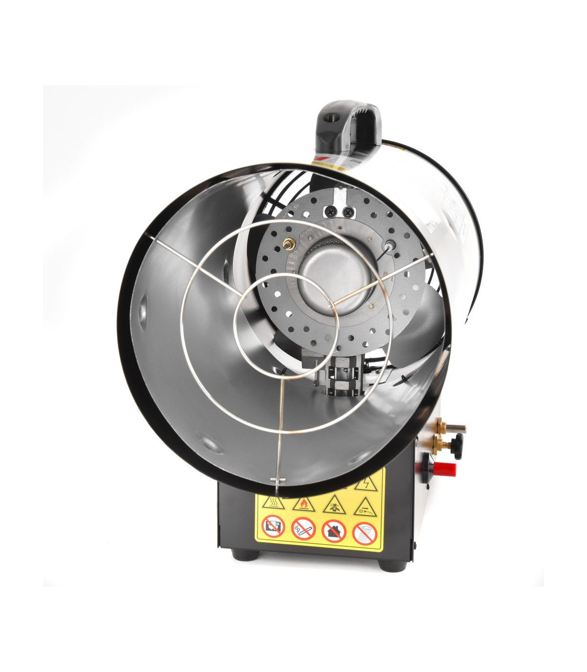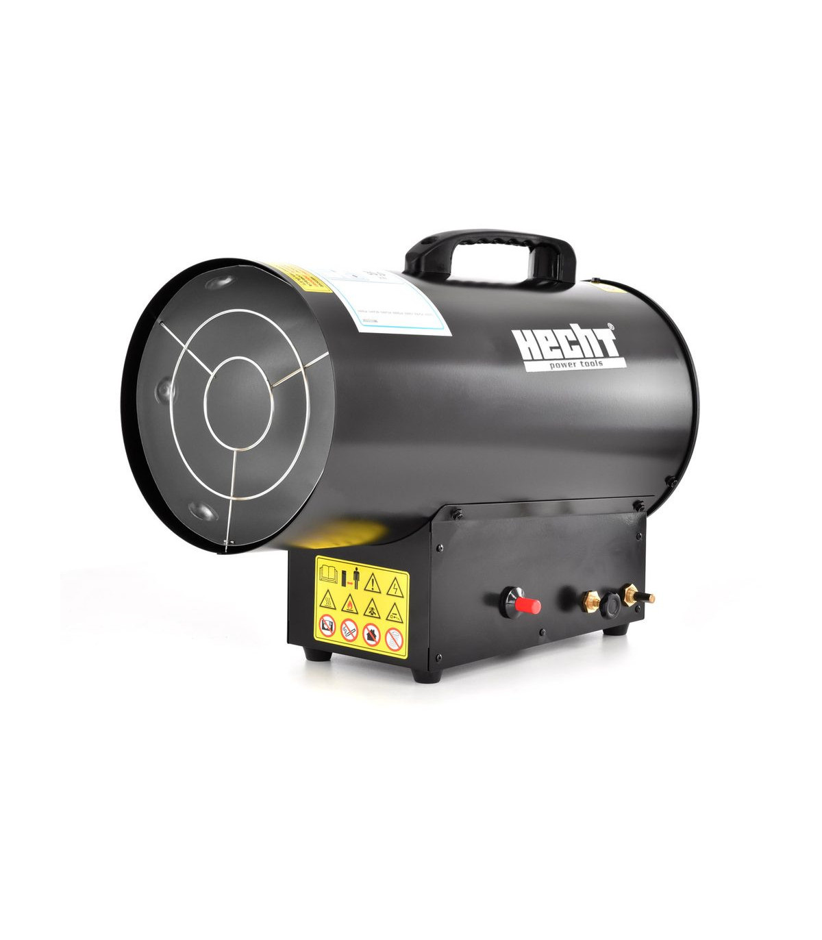 Газовая турбина горячего воздуха HECHT 3016 подходит для отопления на строительных площадках и в других хорошо вентилируемых помещениях. Для приведения в действие турбины горячего воздуха требуется электрическое соединение 230 В / 50 Гц, электрическая мощность составляет всего 57 Вт. В качестве источника топлива необходимо подключить подходящий сосуд высокого давления с пропан-бутаном, который сжигается в турбине. Расход газа составляет ок. 1,07–2,13 кг / ч при тепловой мощности 12–30 кВт. Рекомендуемая максимальная площадь для обогрева - 280 м2. В связи с тем, что турбина горячего воздуха сжигает кислород в воздухе, она не предназначена для обогрева закрытых помещений без вентиляции. Степень защиты IP44. Регулировка мощности. Топливный бак (газ) в комплект не входит. Вес 6,5 кг.