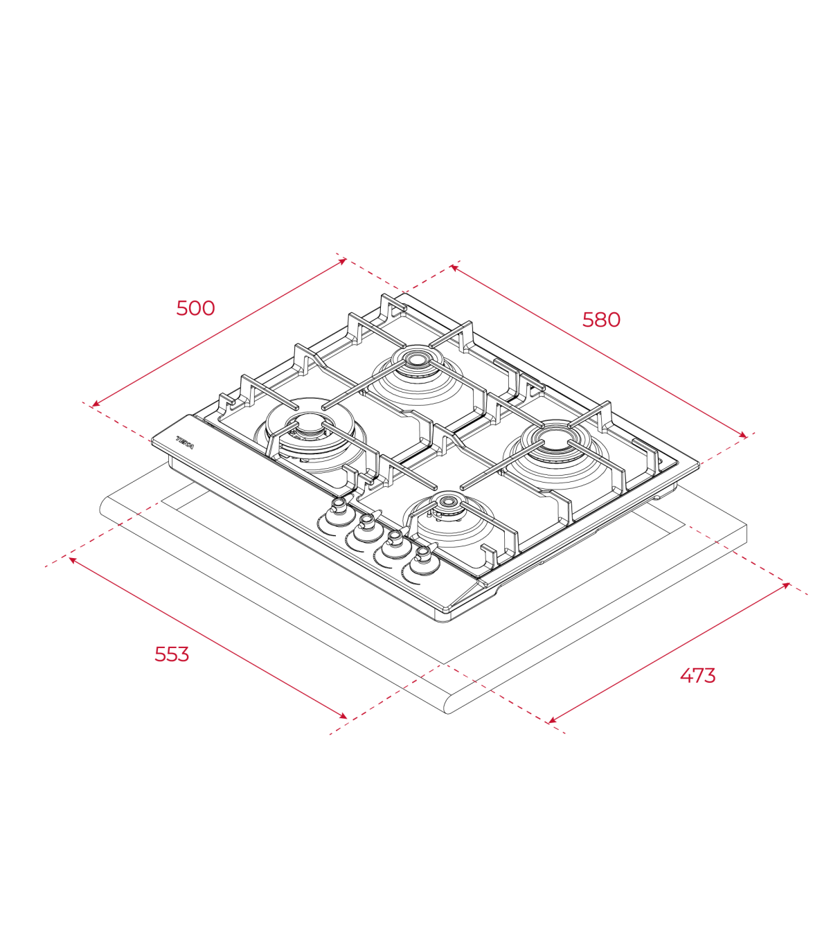 Cast iron grids with curve designed to slide every pan from one burner to another with complete freedom. Higher independence to work in any cooking area.
