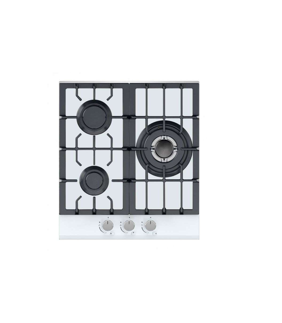 45cm wide 3-burner gas hob Schlosser with white glass ceramic surface