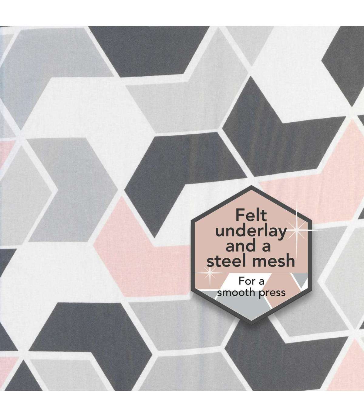 Sellel on rombikujuline 100% puuvillase kattega võrkpaneel, mis toetab ja kaitseb kaunilt teie riideid triikimise ajal.