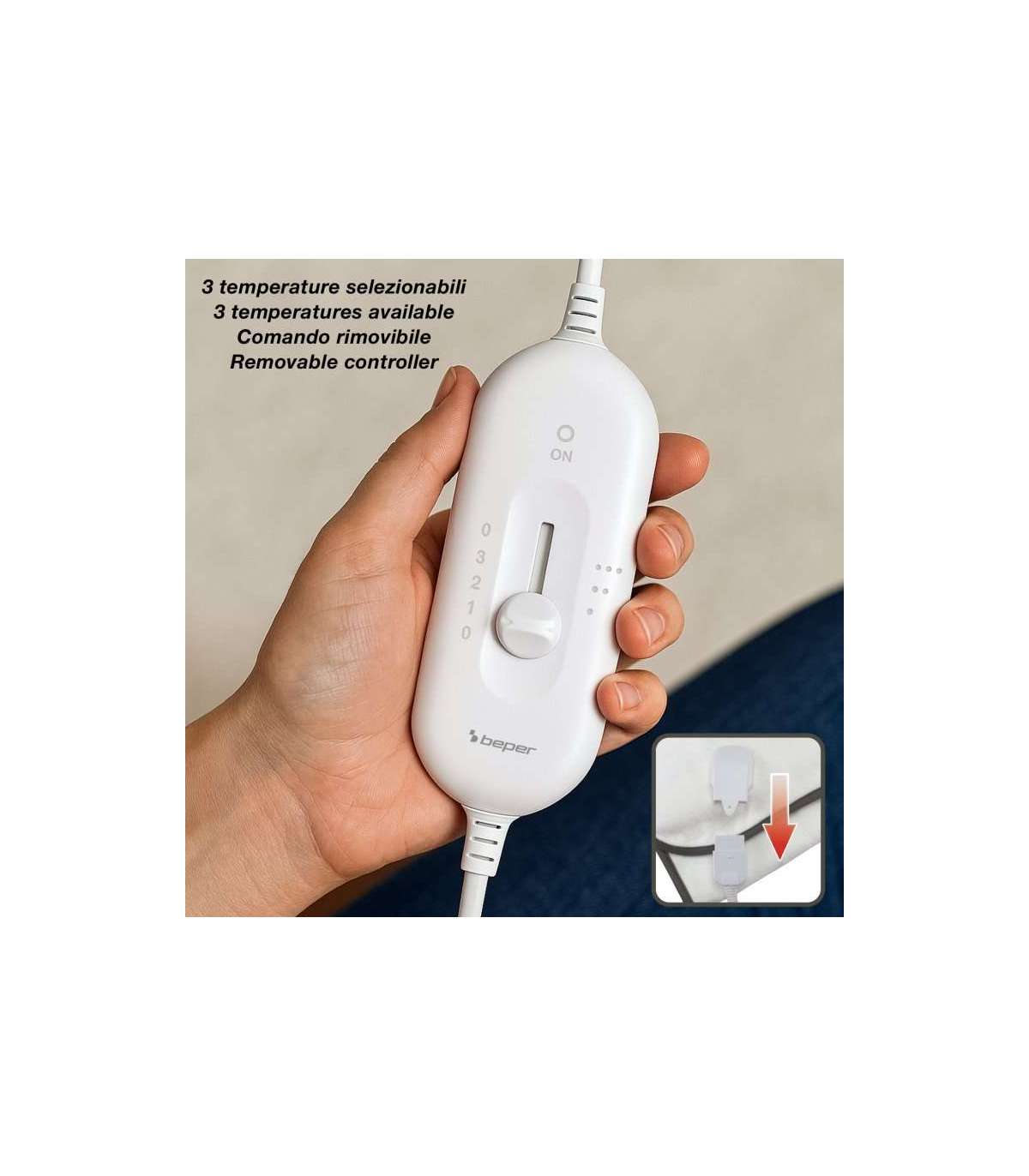 Pehme polüesterist elektritekk, millel on kahe kaasasoleva kaugjuhtimispuldi abil kahes erinevas asendis temperatuuri seadistus.
