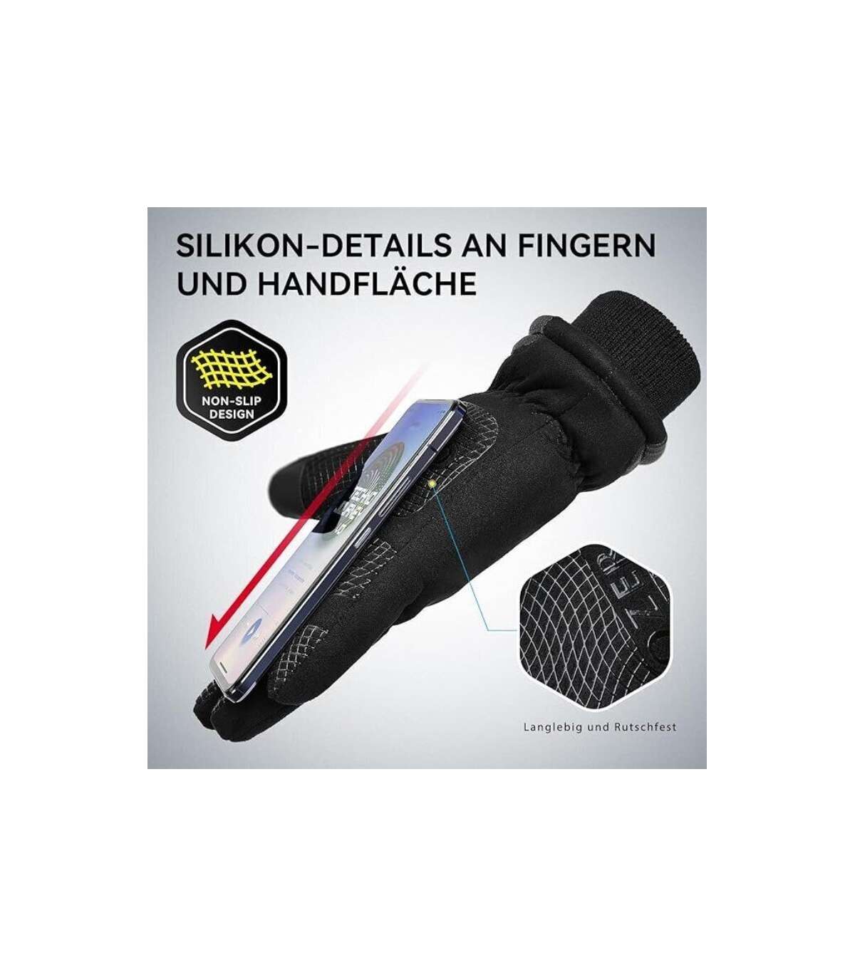 Манжеты с резинкой или застёжкой помогают плотно зафиксировать перчатку на запястье и снизить проникновение холодного воздуха внутрь. В зависимости от конкретной модели, ладонь и пальцы могут иметь противоскользящее покрытие, что улучшает хват за руль, рукоятки или инструменты.