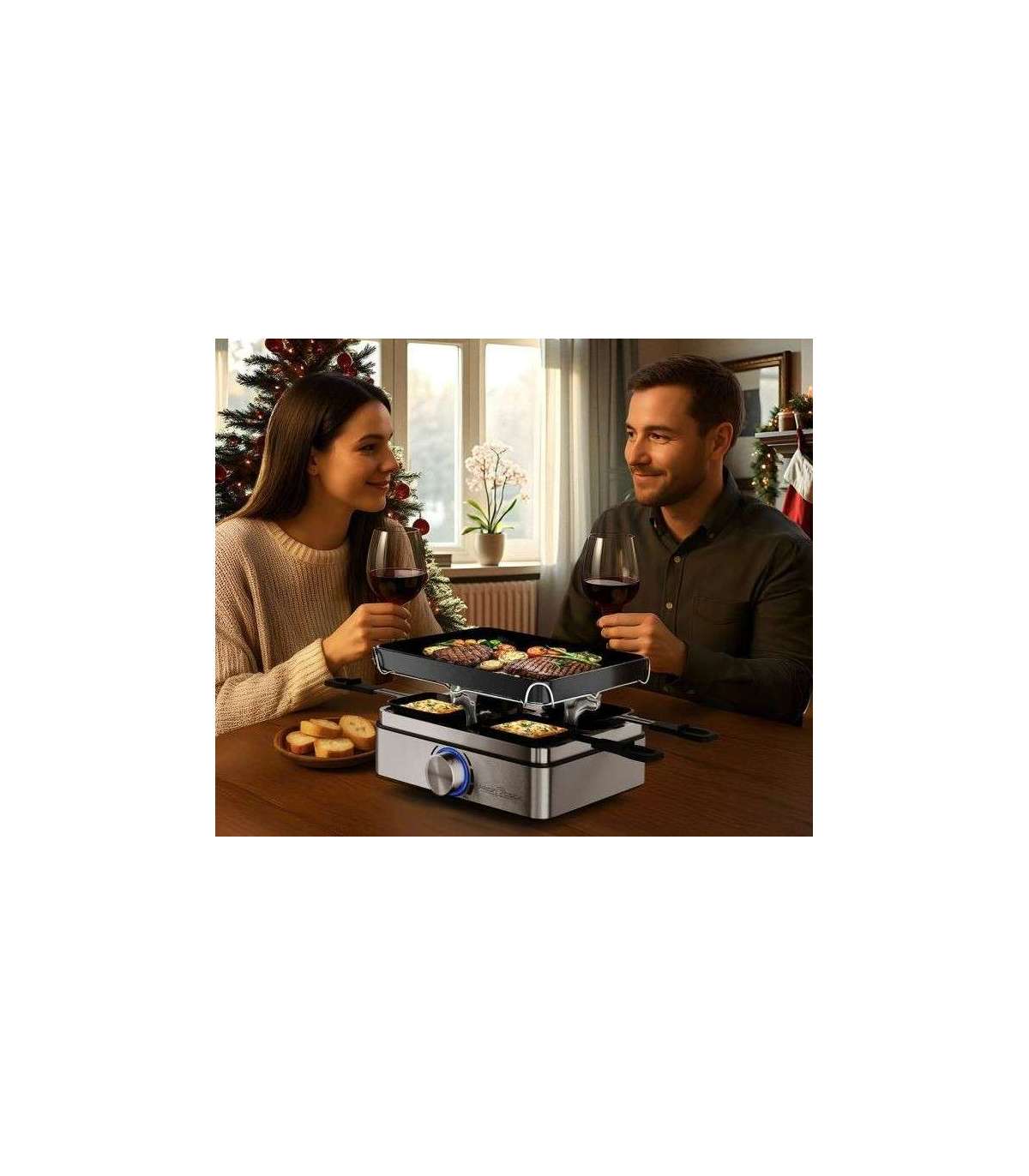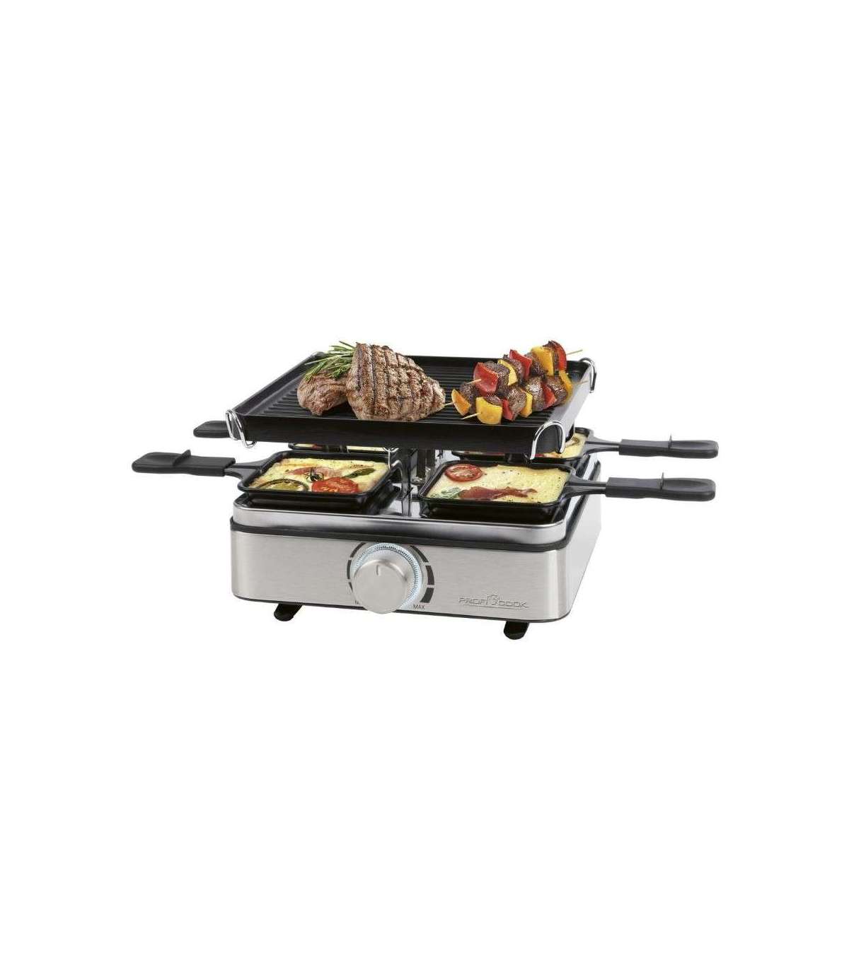 4-person raclette grill Proficook PCRG1301 with high-quality reversible cast iron plate!