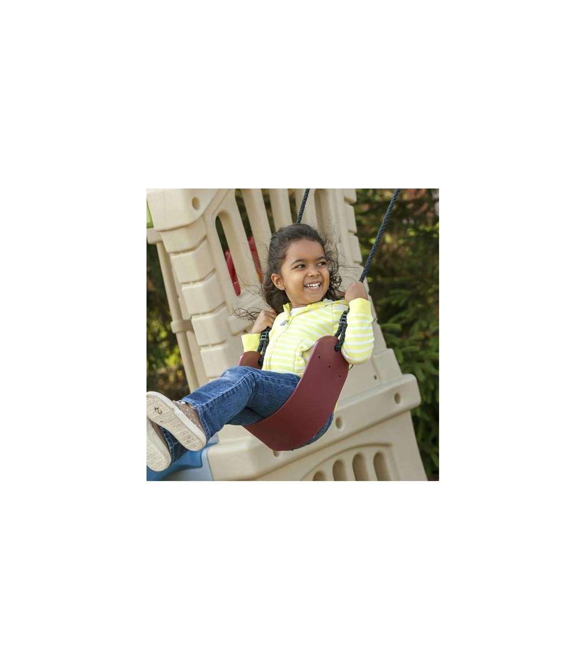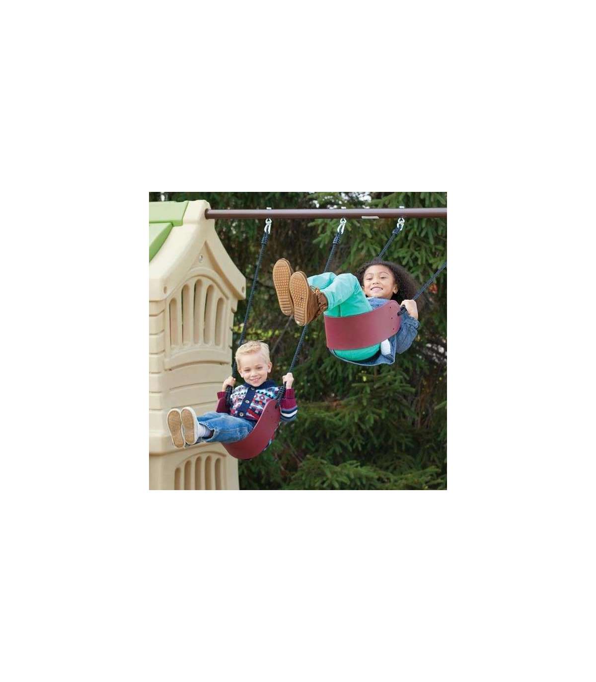 - - Две качели из прочного эластичного каучука обеспечивают безопасность качания для младших и старших детей.
