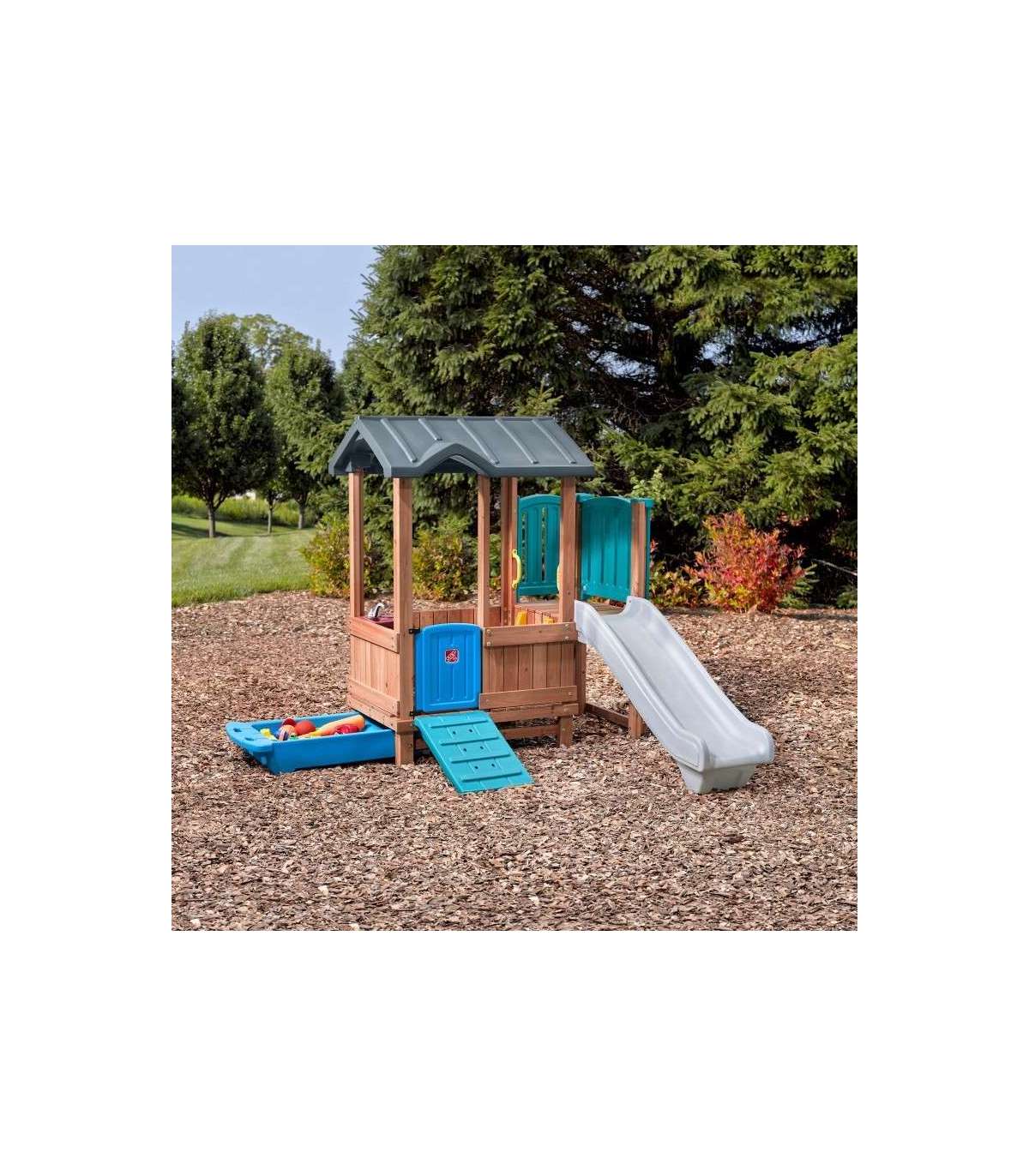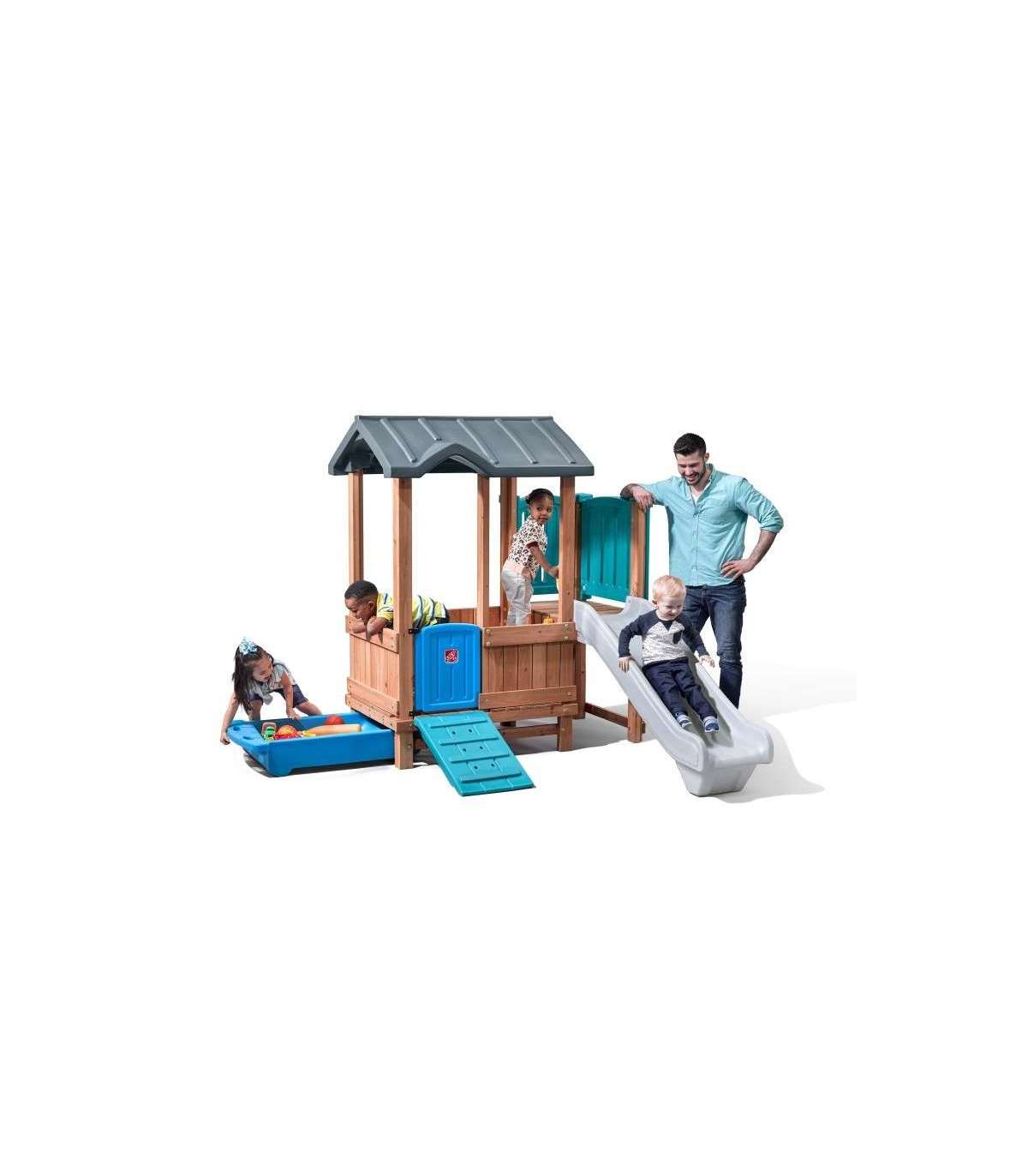Этот симпатичный домик для игр с горкой предоставляет неограниченные возможности! Он может быть замком, хижиной, пиратским кораблём или чем угодно, что они смогут себе представить! Этот стильный комплект для игр на заднем дворе использует смешанные материалы для создания уникального внешнего вида. Конструкция, выполненная преимущественно из дерева, создаёт классический вид. Яркие пластиковые элементы безопасны для детей и выдержат многие часы игры! Этот деревянно-пластиковый домик позволит малышам играть целый день!