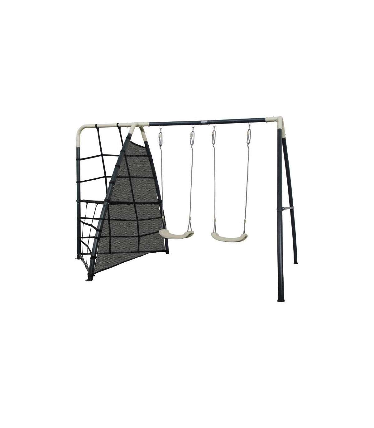 Подарите детям незабываемые моменты на свежем воздухе с двойной качелью Axi! Этот универсальный комплект объединяет две классические качели и увлекательную сетку для лазанья, позволяя детям от 3 лет полноценно развивать ловкость и координацию.