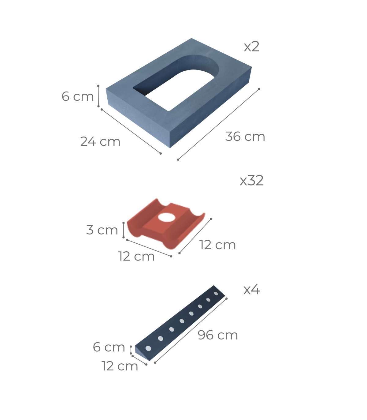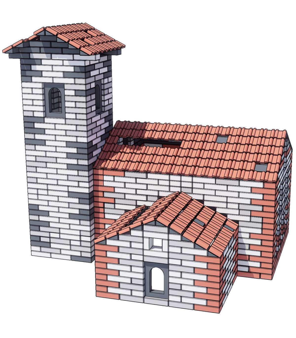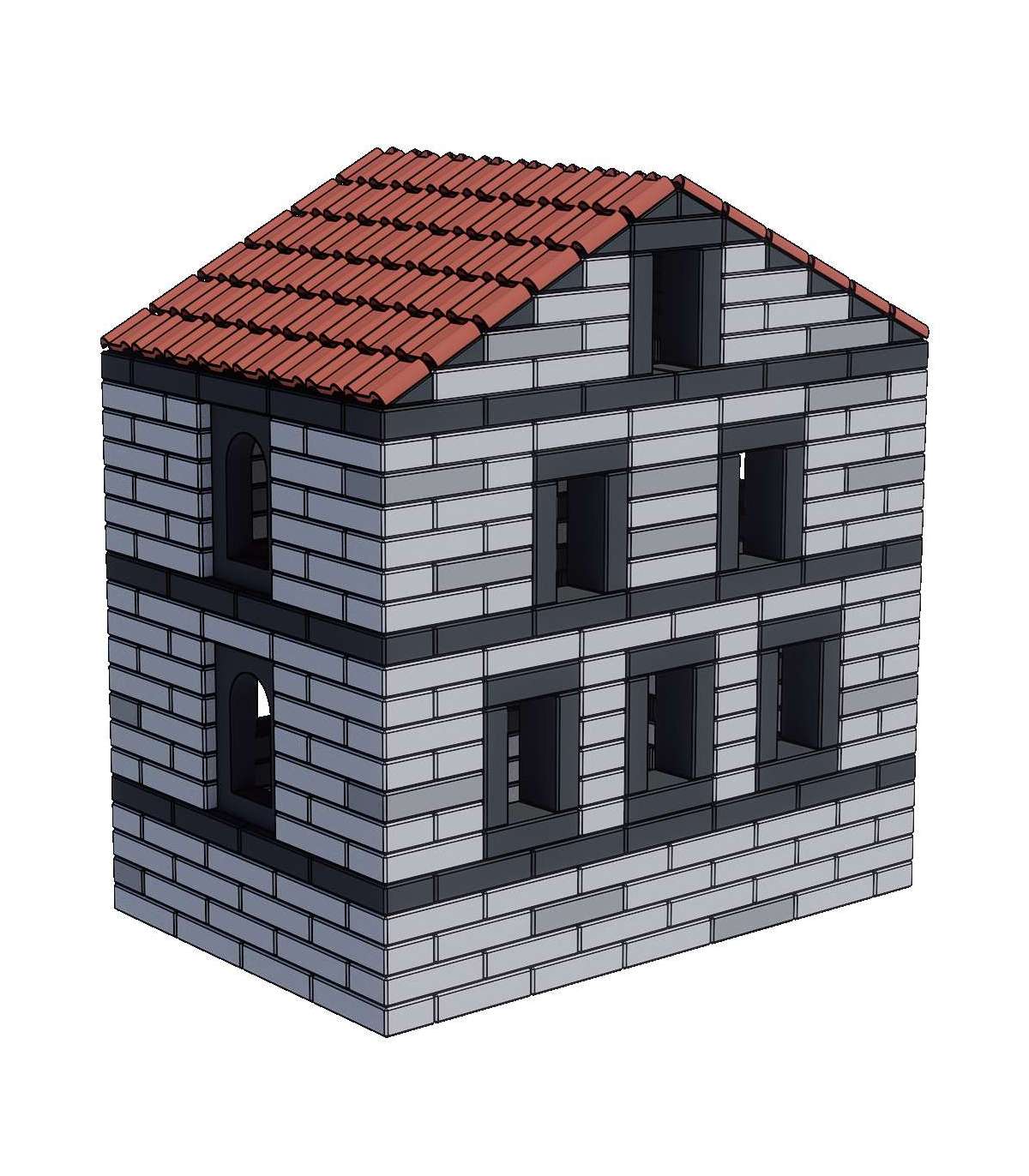 - Треугольная балка: 96 x 12 x 6 (см) / Арочное окно: 24 x 36 x 6 (см) / Крыша: 12 x 12 x 3 (см)