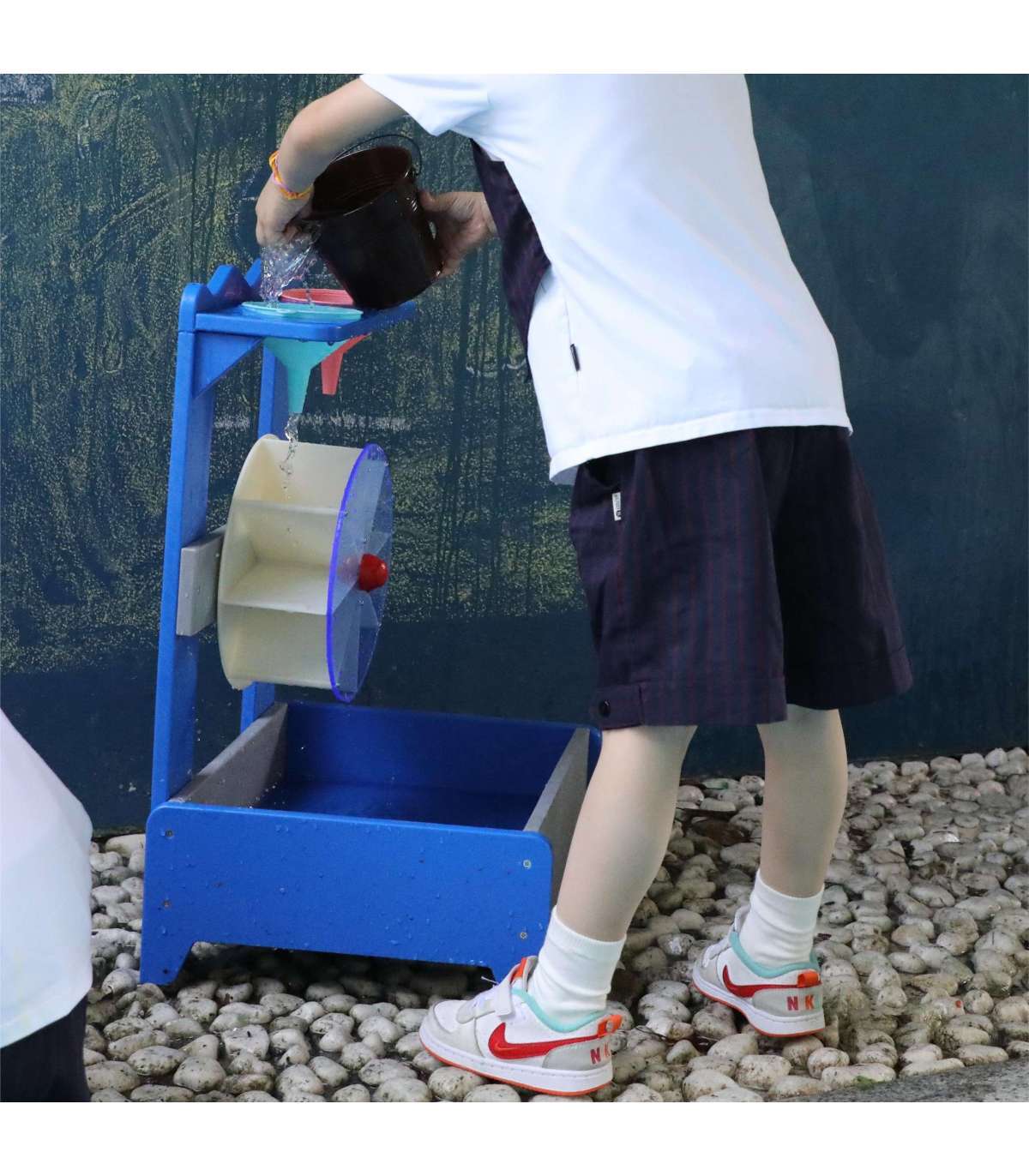 - Экспериментальный набор- ребенок изучает причинно-следственную связь, наблюдая воду, приводящую мельницу в движение.