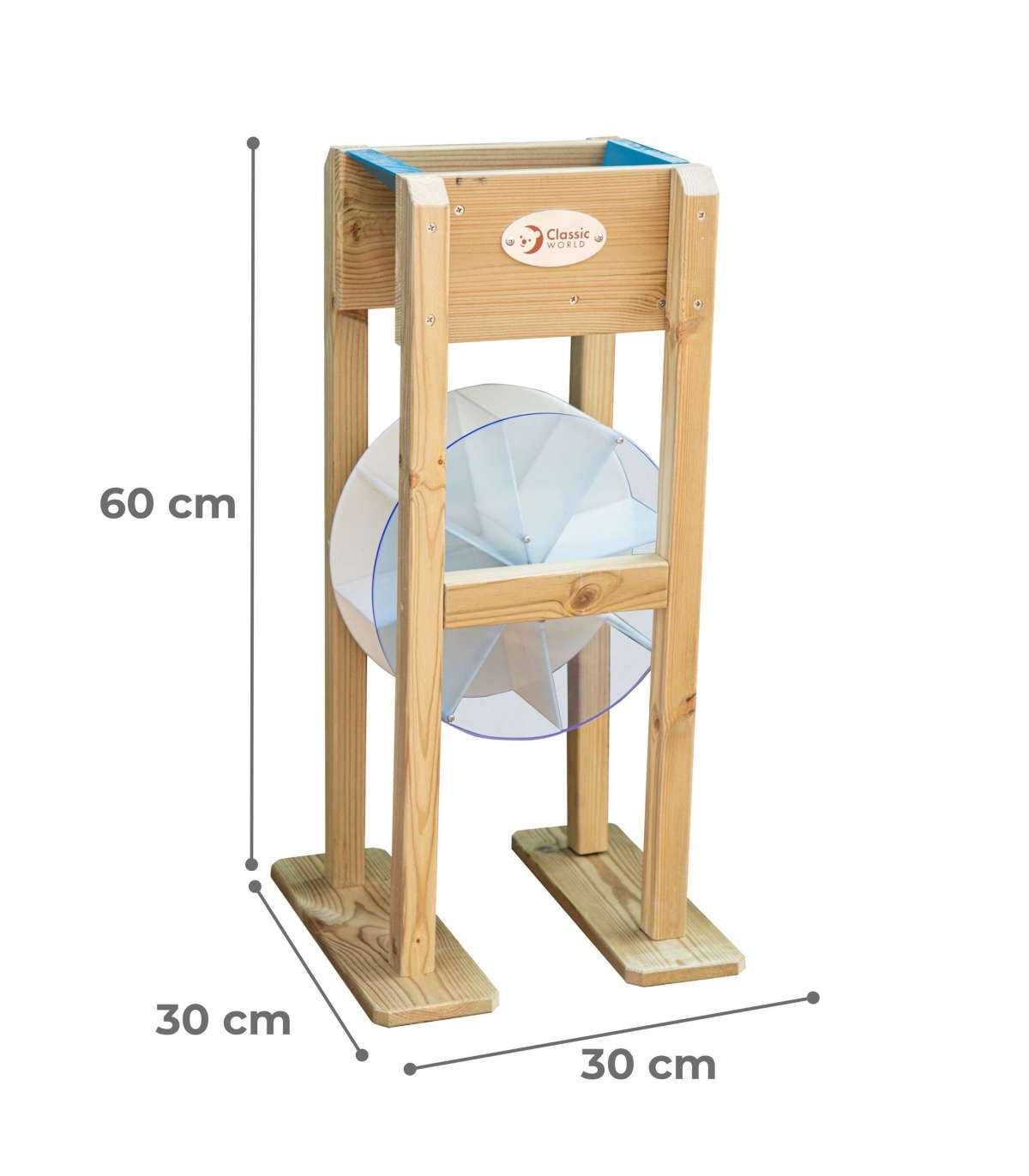 Детская песочная мельница от известного бренда Classic World — идеальное дополнение к вашей песочнице! Продукт изготовлен из высококачественной древесины, покрыт нетоксичной пропиткой, полностью безопасной для детей. Просто наполните воронку песком и наблюдайте, как он просыпается через отверстие, заставляя мельницу вращаться. Игра служит обучением приводу и приведению колеса в движение.