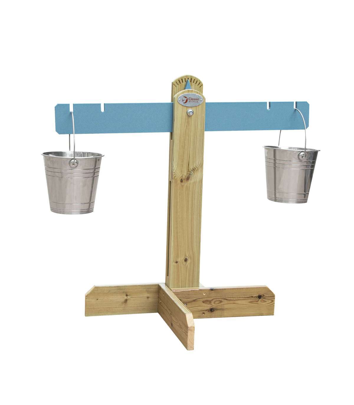 Весы-балансир для детей от известного бренда Classic World. Продукт изготовлен из высококачественной древесины, окрашен нетоксичным составом, полностью безопасен для детей. Наполните металлические ведёрки песком, водой и галькой так, чтобы два ведра находились на одной прямой. Идеальный набор для развития у детей мелкой моторики, креативности и логического мышления. Идеально для вашего домашнего сада!