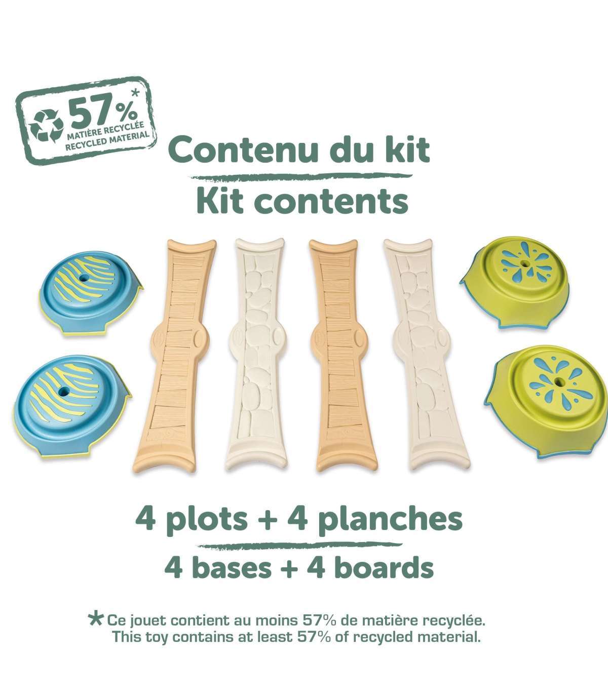 Набор состоит из четырёх длинных (70 см) панелей с различной фактурой и четырёх оснований для их крепления. Возможность произвольной конфигурации элементов позволяет создать трассу длиной до 3,5 метров, адаптированную к навыкам ребёнка. Рекомендуется проходить дорожку босиком — это усиливает сенсорные ощущения и положительно влияет на развитие нервной системы.