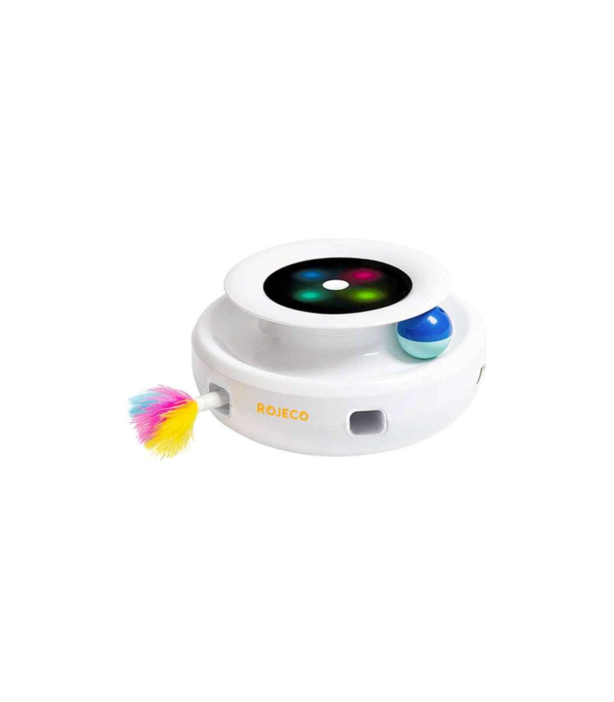 Make sure your cat can have great fun while you're away, too. Rojeco's interactive toy is equipped with three types of feathers in different colors that unexpectedly pop out of six holes, encouraging your pet to hunt. To provide maximum entertainment for the pet, two balls that rotate 360° have also been provided. This allows four-legged companions not only to develop their instincts, but also to move more. Take care of your furry friend's well-being with Rojeco!