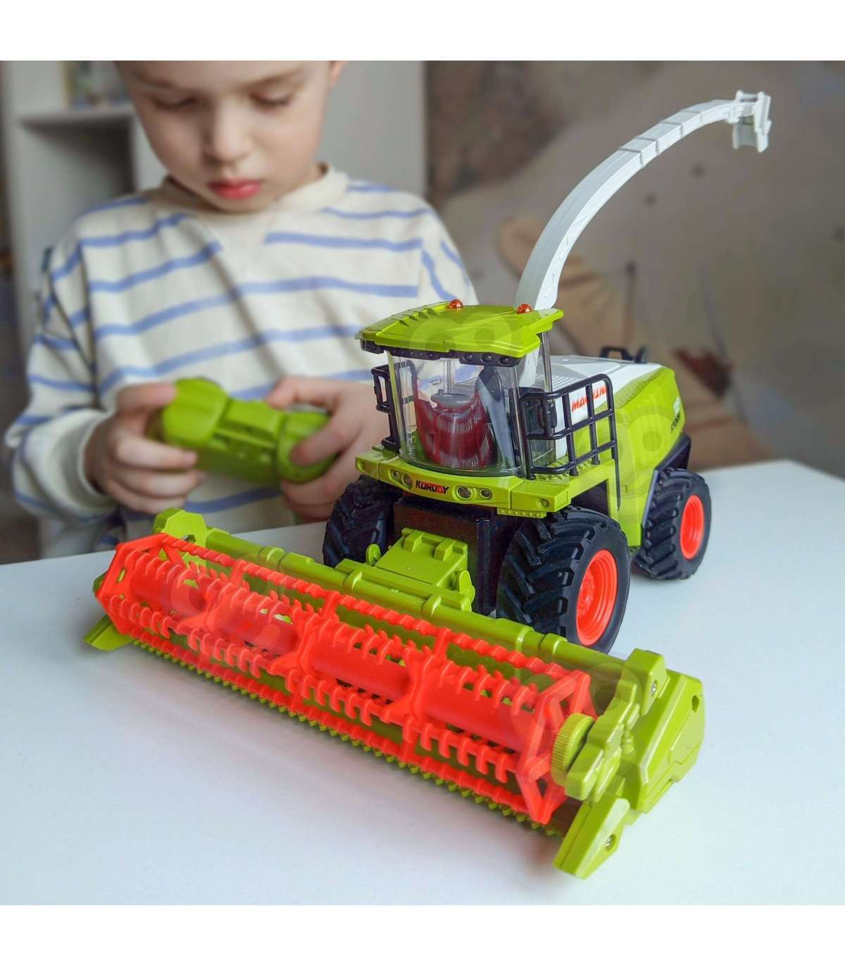 Zdalnie sterowany kombajn rolniczy marki Woopie to imponujący pojazd, który zamienia pokój w pole pełne przygód i realistycznych akcji zbiorów. Duże koła, ruchomy zbieracz oraz obrotowy wyrzutnik „sieczki” zachęcają do scenariuszy rodem z gospodarstwa, rozwijając wyobraźnię i dając mnóstwo satysfakcji z prowadzenia maszyny jak prawdziwy operator.
